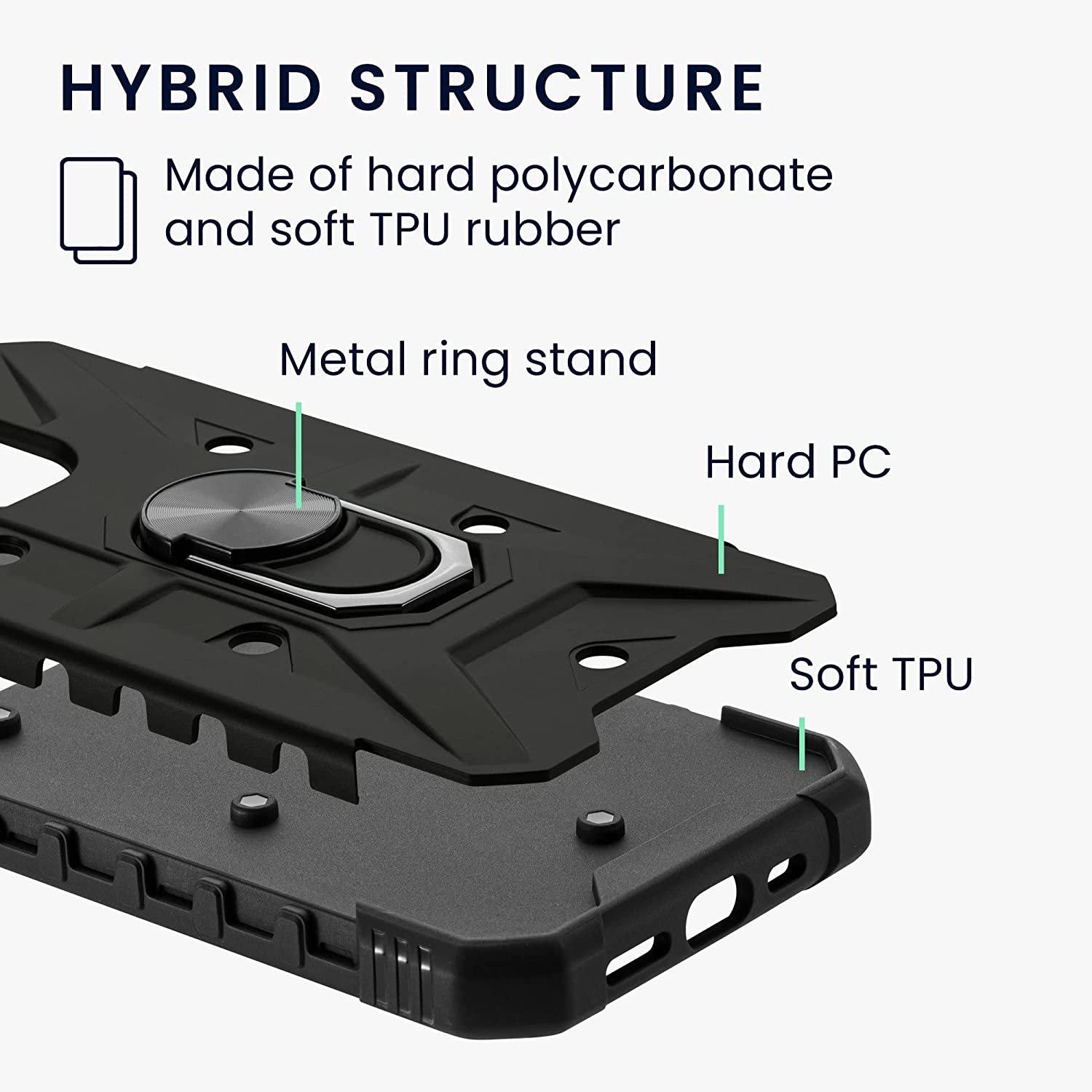 Είναι κατασκευασμένη στο πίσω μέρος από σκληρό πλαστικό, ενώ εσωτερικά και περιμετρικά από σιλικόνη TPU, για εξαιρετική προστασία. Έχει αυξημένο χείλος περιμετρικά της οθόνης αλλά και γύρω από την κάμερα, ώστε να προστατεύει το κινητό από χτυπήματα και γρατζουνιές σε πιθανή πτώση.