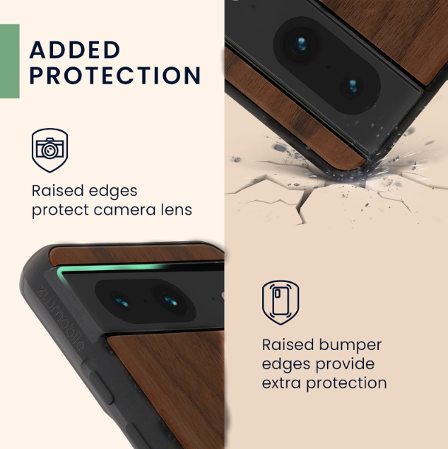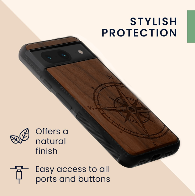 Ο μοναδικός σχεδιασμός της θήκης συνδυάζει εξωτερικά με σκληρό πλαστικό (PC) με ξύλο στο πίσω μέρος της, για να προστατεύσει το Google Pixel 8 από γρατζουνιές, φθορές, πτώσεις ή χτυπήματα και εσωτερικά με θερμοπλαστική πολυουρεθάνη (TPU) που απορροφά τους κραδασμούς, είναι ελαστική και εύκαμπτη.