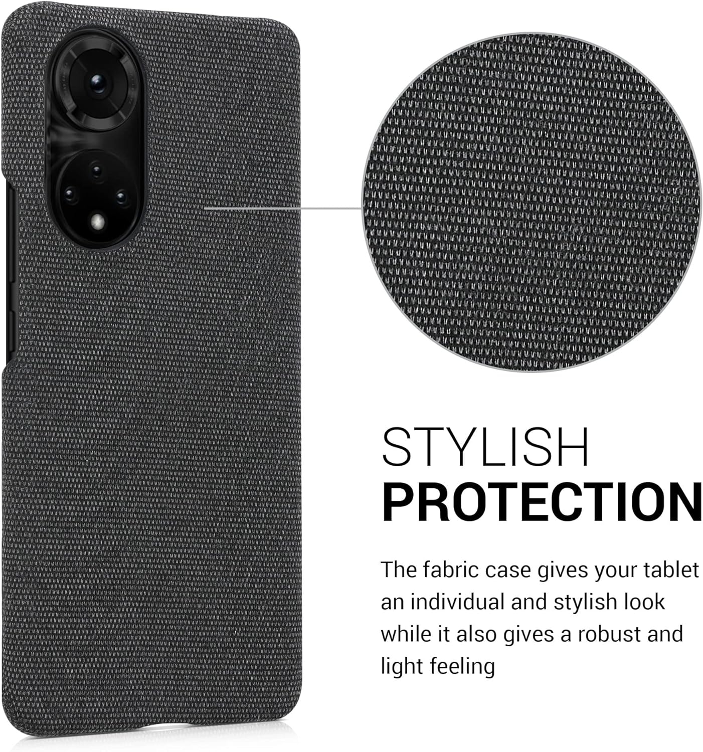 Αποτελείται από σκληρό πολυανθρακικό πλαστικό (PC) για να προστατεύσει το Honor 50 από γρατζουνιές, φθορές, πτώσεις ή χτυπήματα και εξωτερικά από ανθεκτικό ύφασμα για μία κλασική, διαχρονική εμφάνιση.