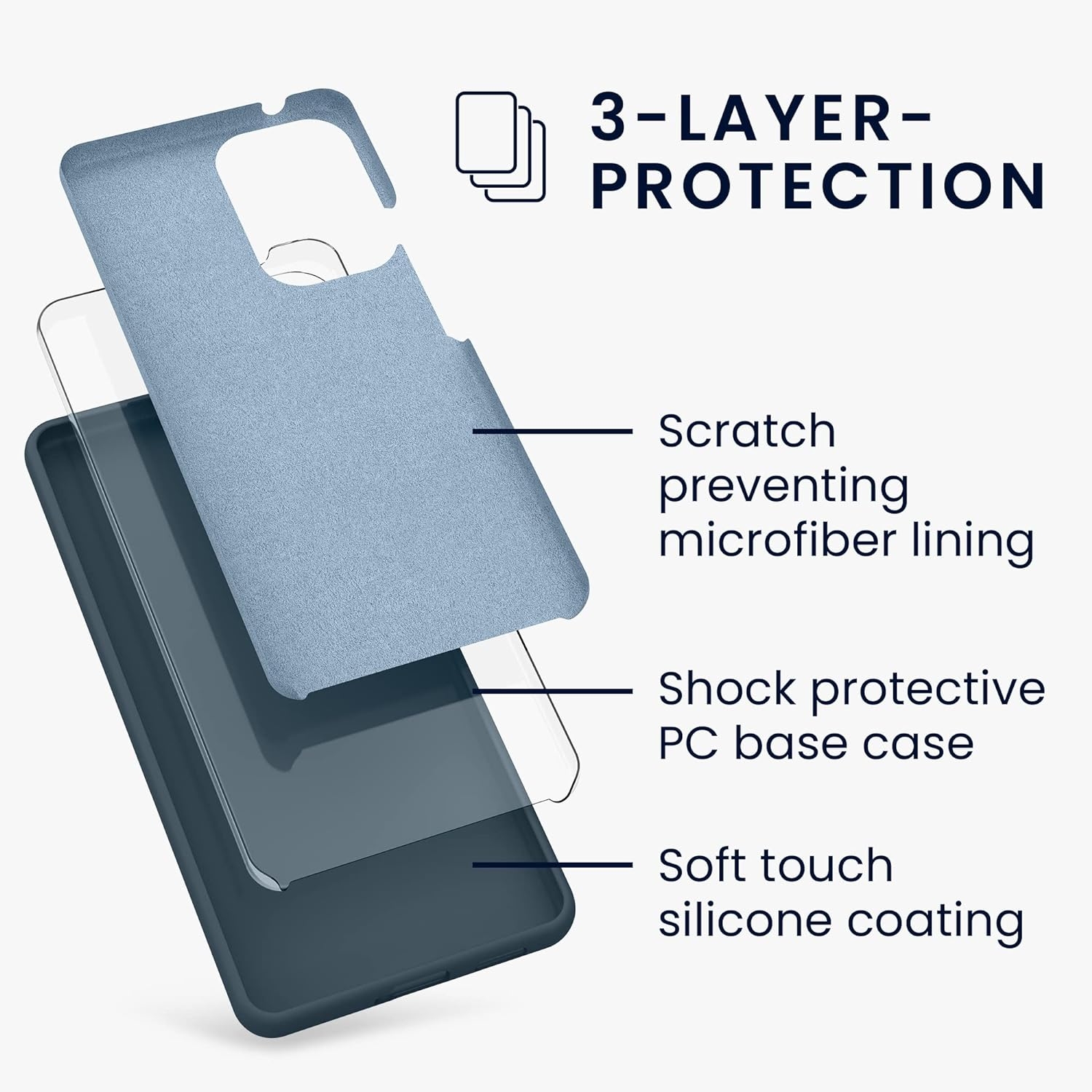 Κατασκευασμένη από 3 στρώματα προστασίας, από εύκαμπτη σιλικόνη (TPU) εξωτερικά, PC και μικροΐνες εσωτερικά για καλύτερο κράτημα, ώστε να προστατεύει τη συσκευή σας από κραδασμούς, πτώσεις και χτυπήματα ή γρατσουνιές οι οποίες μπορεί να προκληθούν κατά την καθημερινή χρήση.