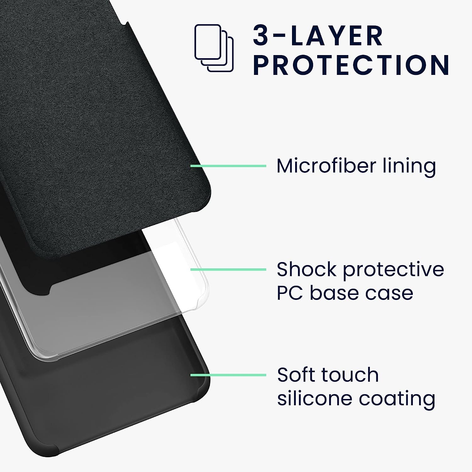 Κατασκευασμένη από 3 στρώματα προστασίας, από εύκαμπτη σιλικόνη (TPU) εξωτερικά, PC και μικροΐνες εσωτερικά για καλύτερο κράτημα, ώστε να προστατεύει τη συσκευή σας από κραδασμούς, πτώσεις και χτυπήματα ή γρατσουνιές οι οποίες μπορεί να προκληθούν κατά την καθημερινή χρήση.