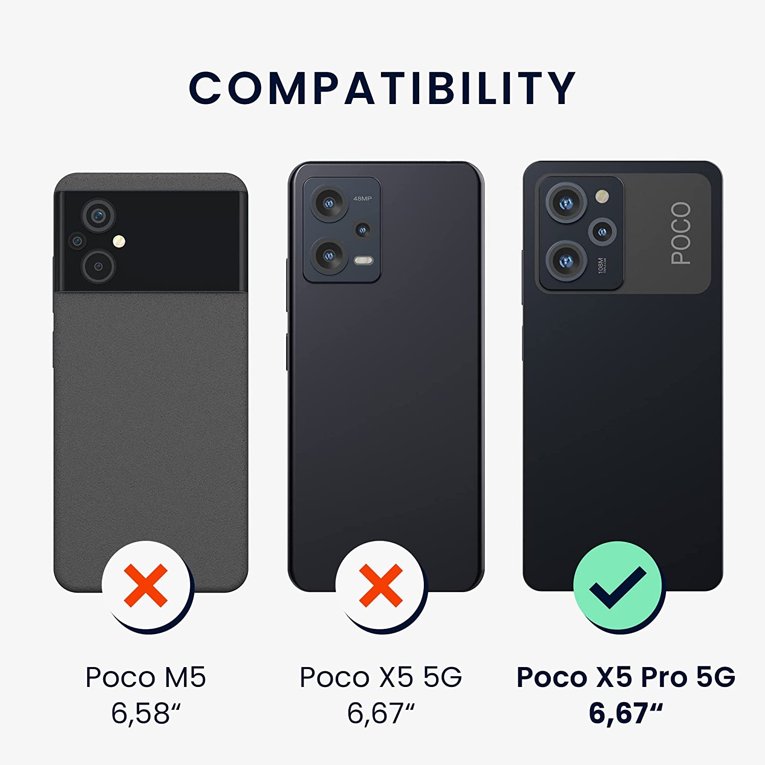 Η θήκη είναι συμβατή μόνο με το Xiaomi Poco X5 Pro και όχι με το Xiaomi Redmi Note 12 Turbo, Redmi Note 12 5G, Redmi Note 12 Pro, Redmi Note 12 Pro 4G, Redmi Note 12 Pro Plus, Redmi Note 12 4G, Redmi Note 12 Pro Speed, Redmi Note 12 (China), Redmi Note 12 Discovery ή Xiaomi Poco X5.