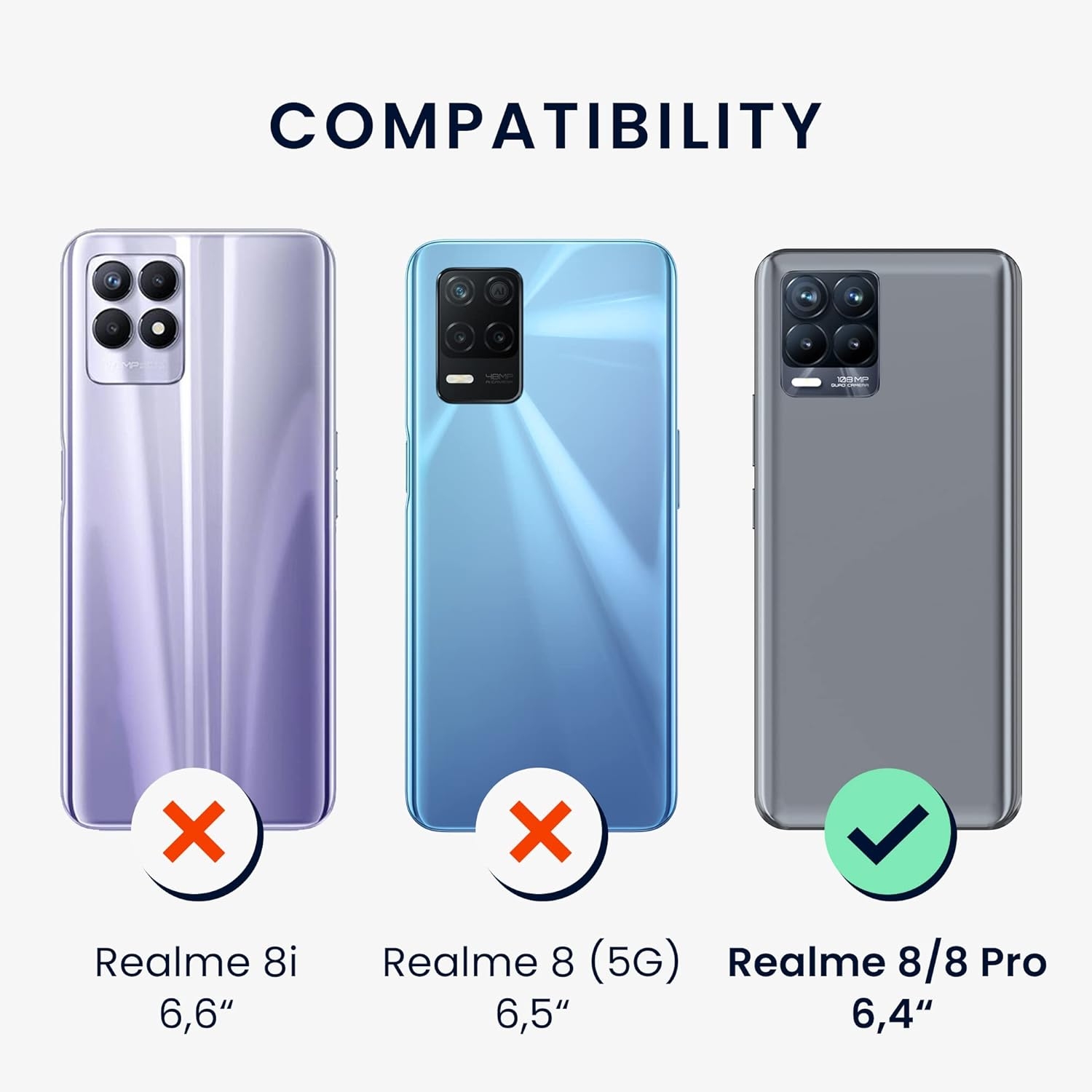 Η θήκη είναι συμβατή μόνο με το Realme 8 / 8 Pro και όχι με το Realme 8i, 8 5G ή 8s 5G.