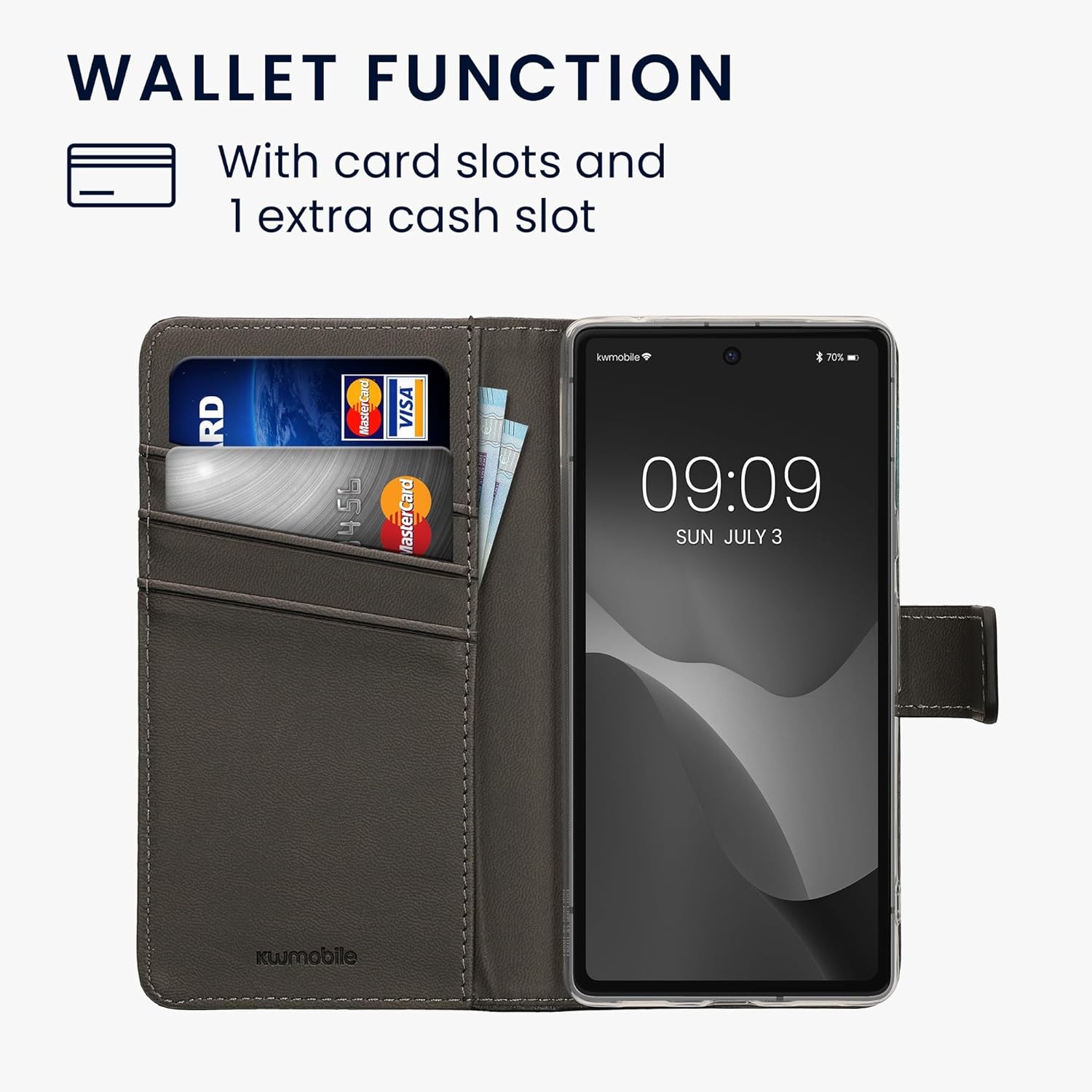 Διαθέτει στο εσωτερικό της 3 θήκες για πιστωτικές κάρτες και μια εσοχή για χαρτονομίσματα, ώστε να τα έχετε όλα μαζί σας σε μια μόνο θήκη. Με μαγνητικό κλιπ για ευκολότερη χρήση και περισσότερη ασφάλεια. Μπορείτε να χρησιμοποιήσετε το Google Pixel 7a, ενώ βρίσκεται στη θήκη, να μιλήσετε, να βγάλετε φωτογραφίες, να το φορτίσετε ή να ακούσετε μουσική με τα ακουστικά.