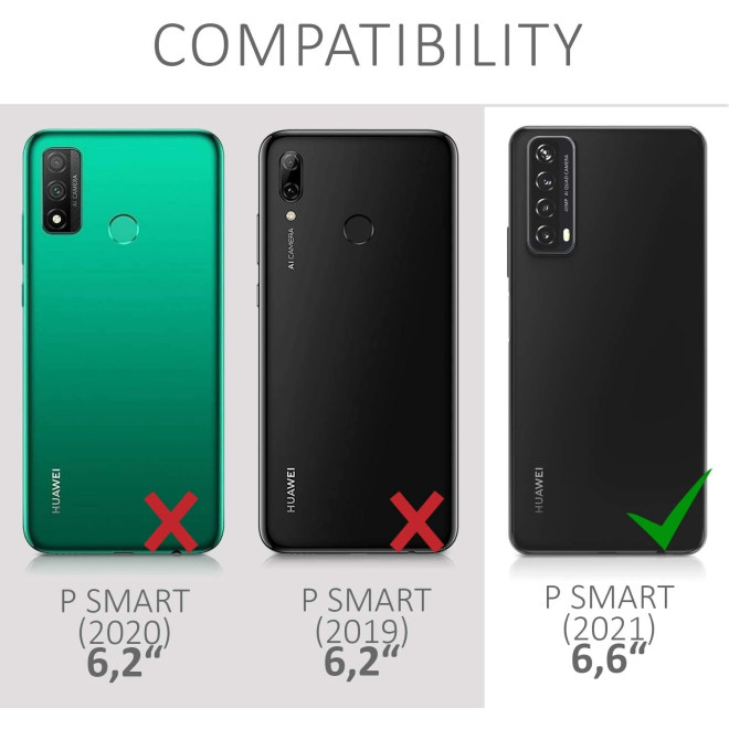 Η θήκη είναι συμβατή μόνο με το Huawei P Smart 2021 και όχι με το P Smart 2019 ή P Smart 2020 .