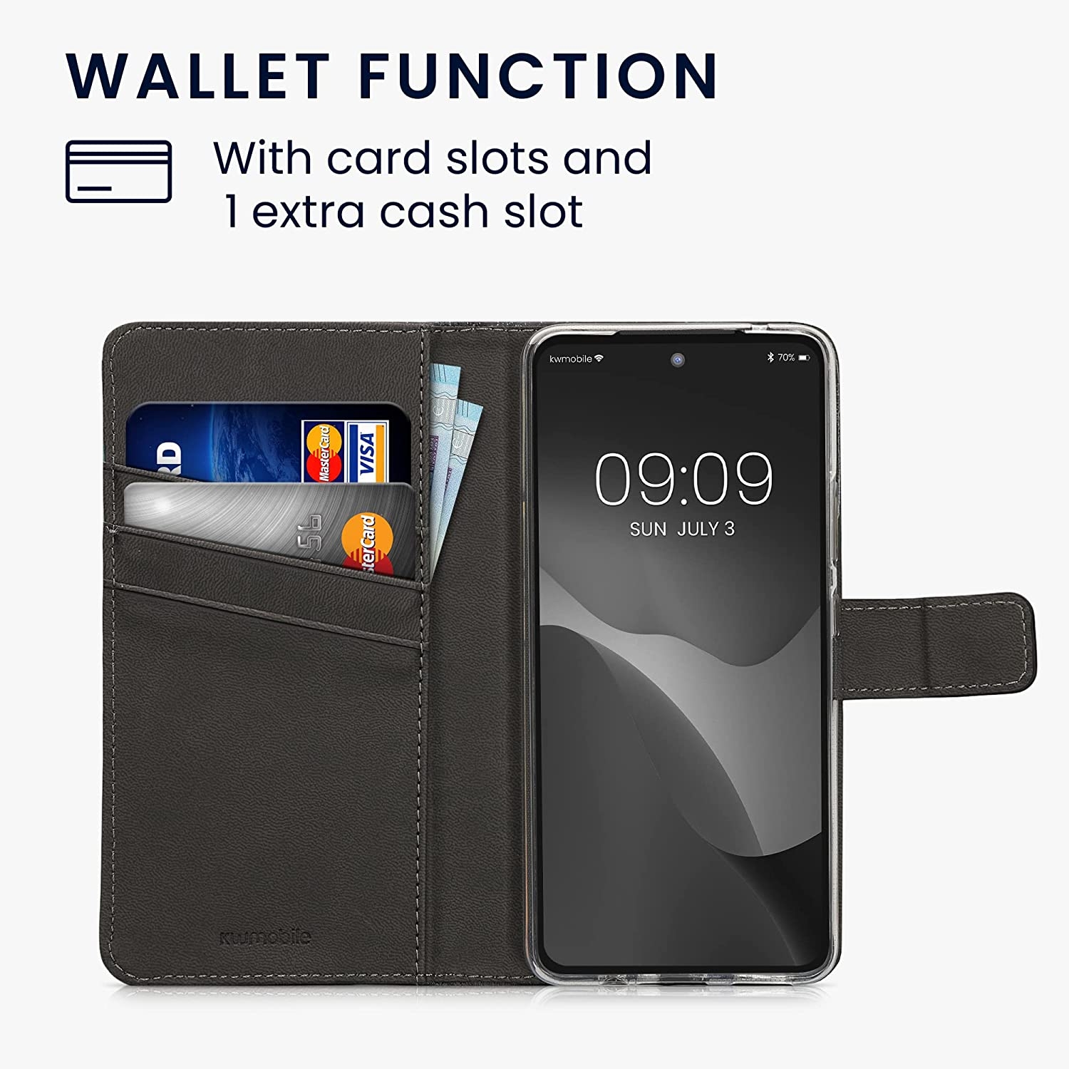 Διαθέτει στο εσωτερικό της 3 θήκες για πιστωτικές κάρτες και μια εσοχή για χαρτονομίσματα, ώστε να τα έχετε όλα μαζί σας σε μια μόνο θήκη. Με μαγνητικό κλιπ για ευκολότερη χρήση και περισσότερη ασφάλεια. Μπορείτε να χρησιμοποιήσετε το Motorola Moto G72, ενώ βρίσκεται στη θήκη, να μιλήσετε, να βγάλετε φωτογραφίες, να το φορτίσετε ή να ακούσετε μουσική με τα ακουστικά.