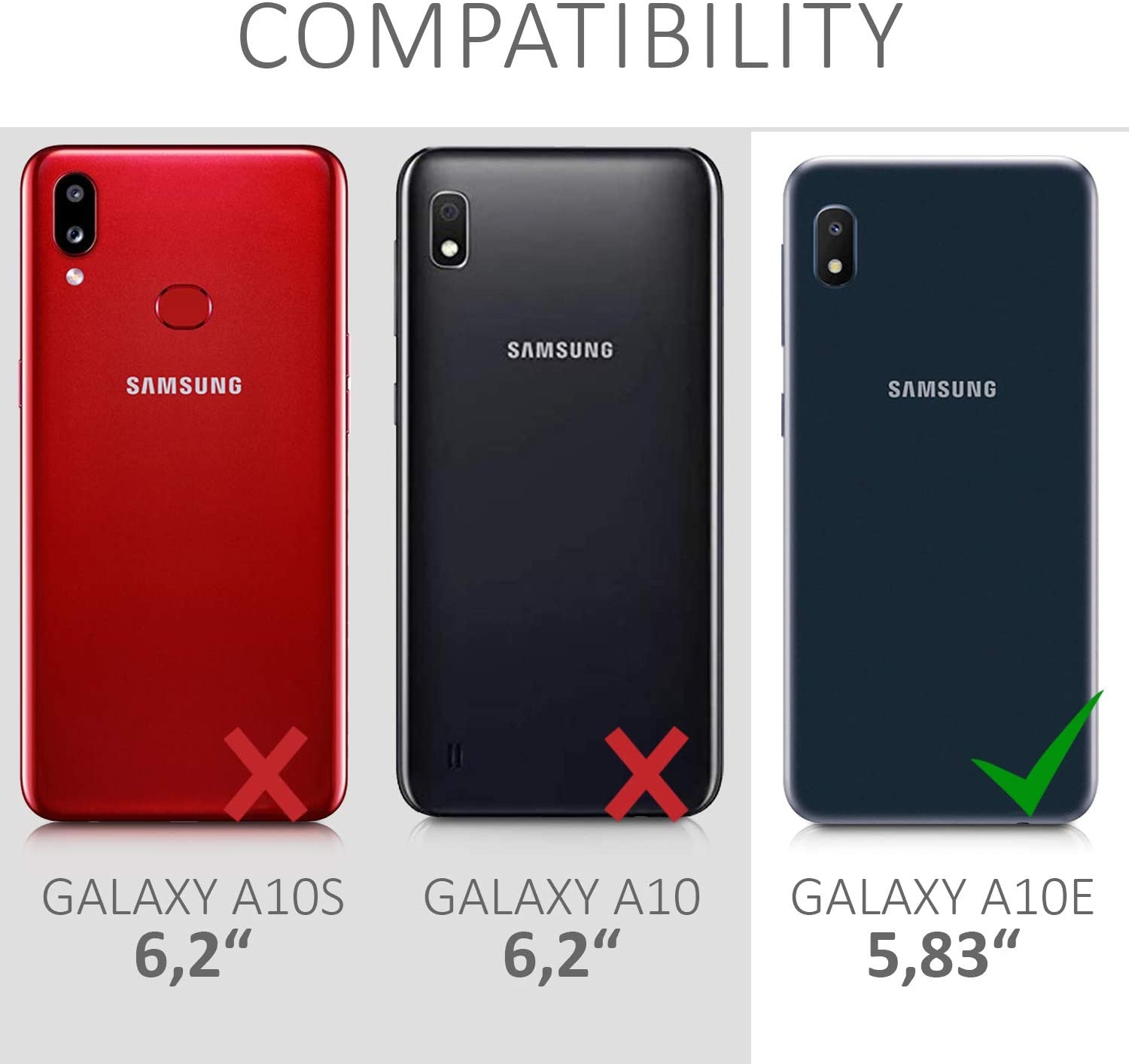 Η θήκη είναι συμβατή μόνο με το Samsung Galaxy A10e και όχι με το Samsung Galaxy A10 ή Α10s.