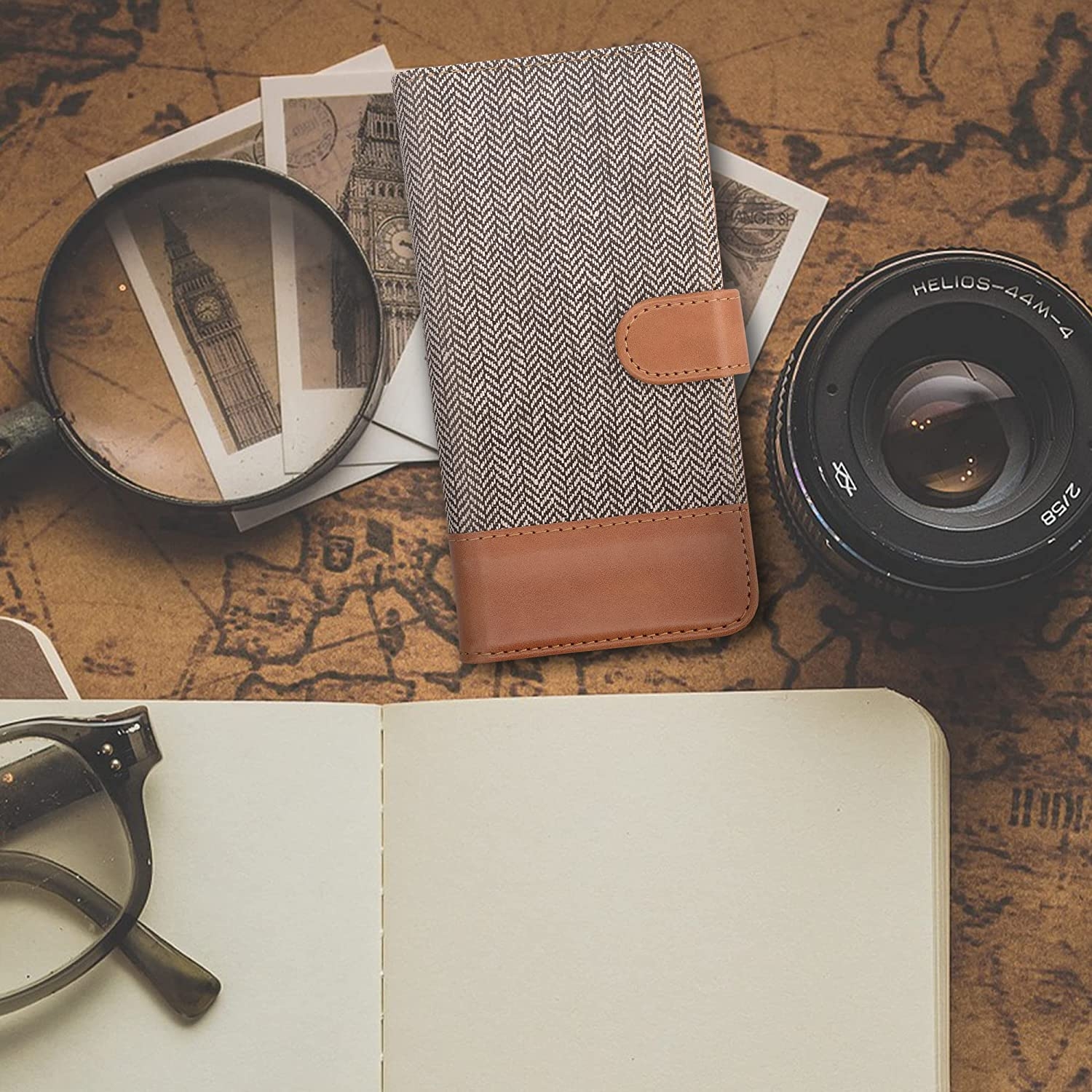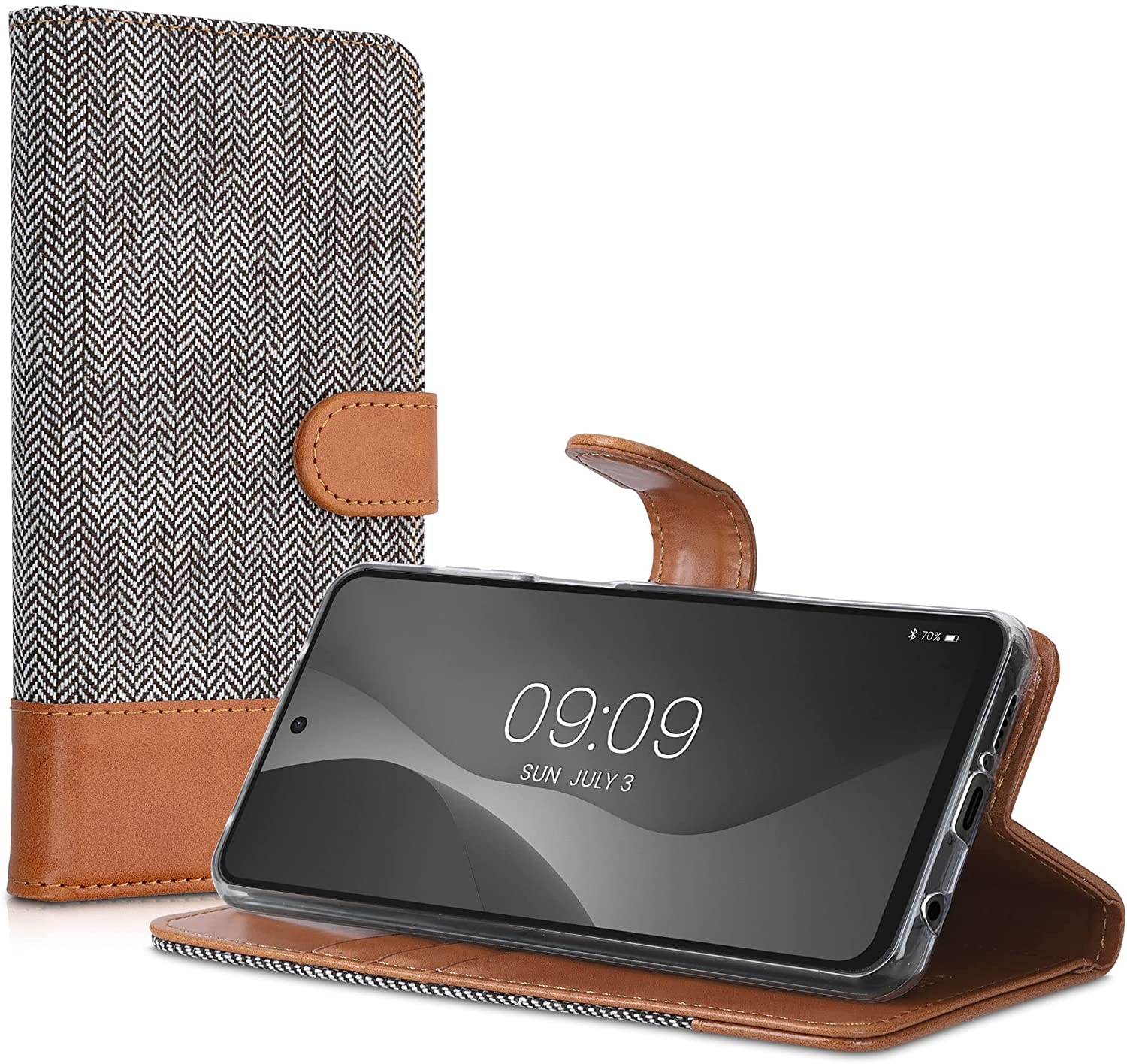 Με μαγνητικό κλιπ για ευκολότερη χρήση. Αποτελείται από συνθετικό δέρμα και ύφασμα εξωτερικά και εσωτερικά εφαρμόζεται πάνω στο κινητό με μια θήκη σιλικόνης για περισσότερη προστασία αλλά και στυλ!