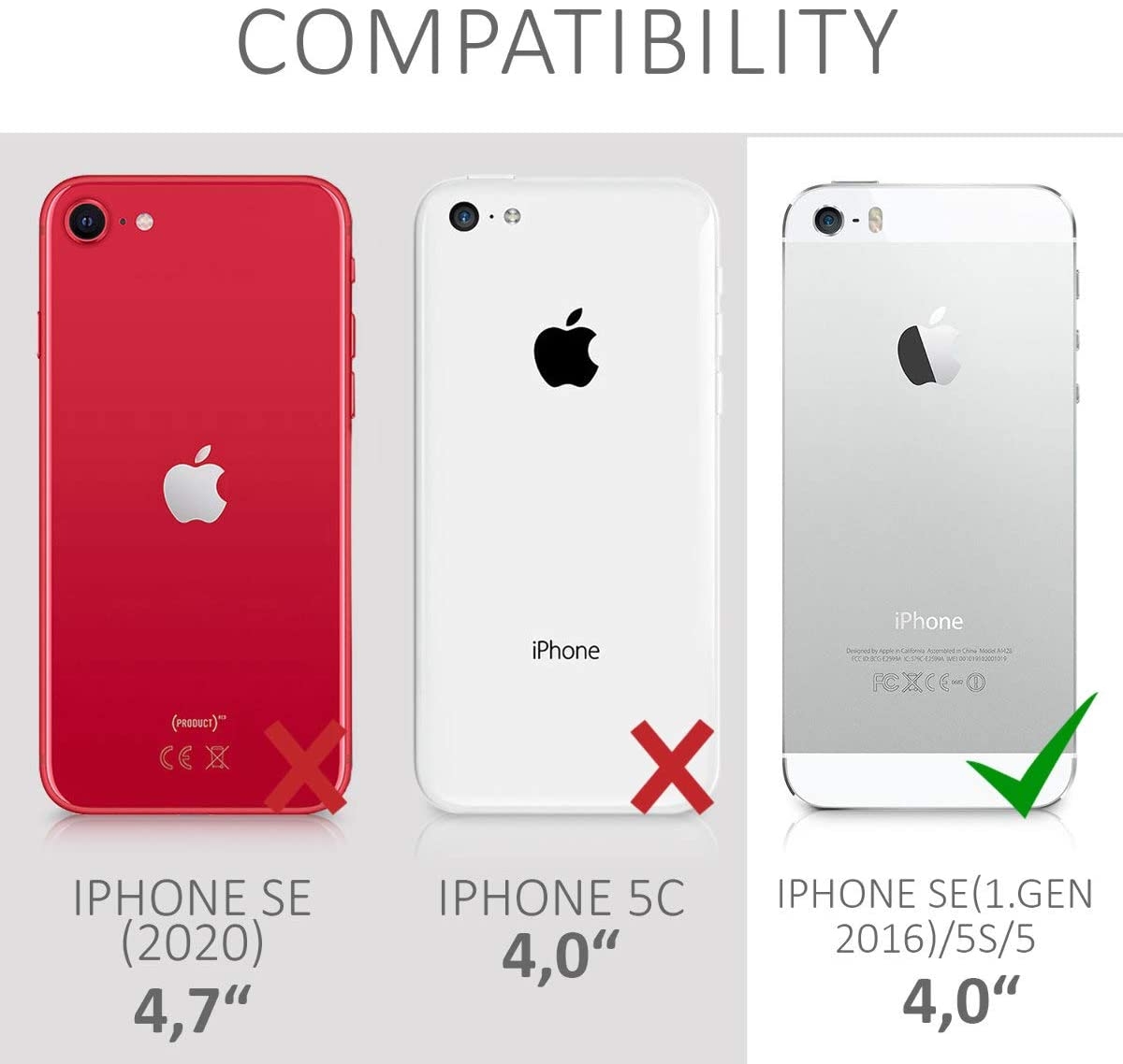 Η θήκη είναι συμβατή μόνο με το iPhone SE / 5S / 5 και όχι με το iPhone SE 2020.