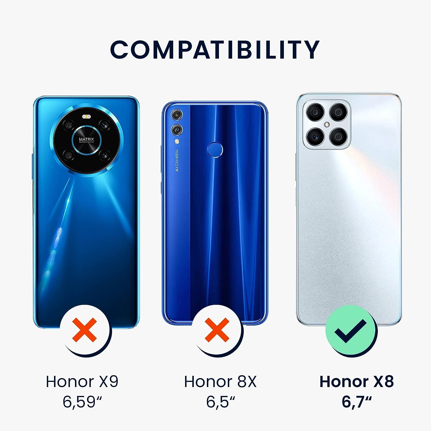 Η θήκη είναι συμβατή μόνο με το Honor X8 4G και όχι με το Honor X8a ή Honor X8 5G.