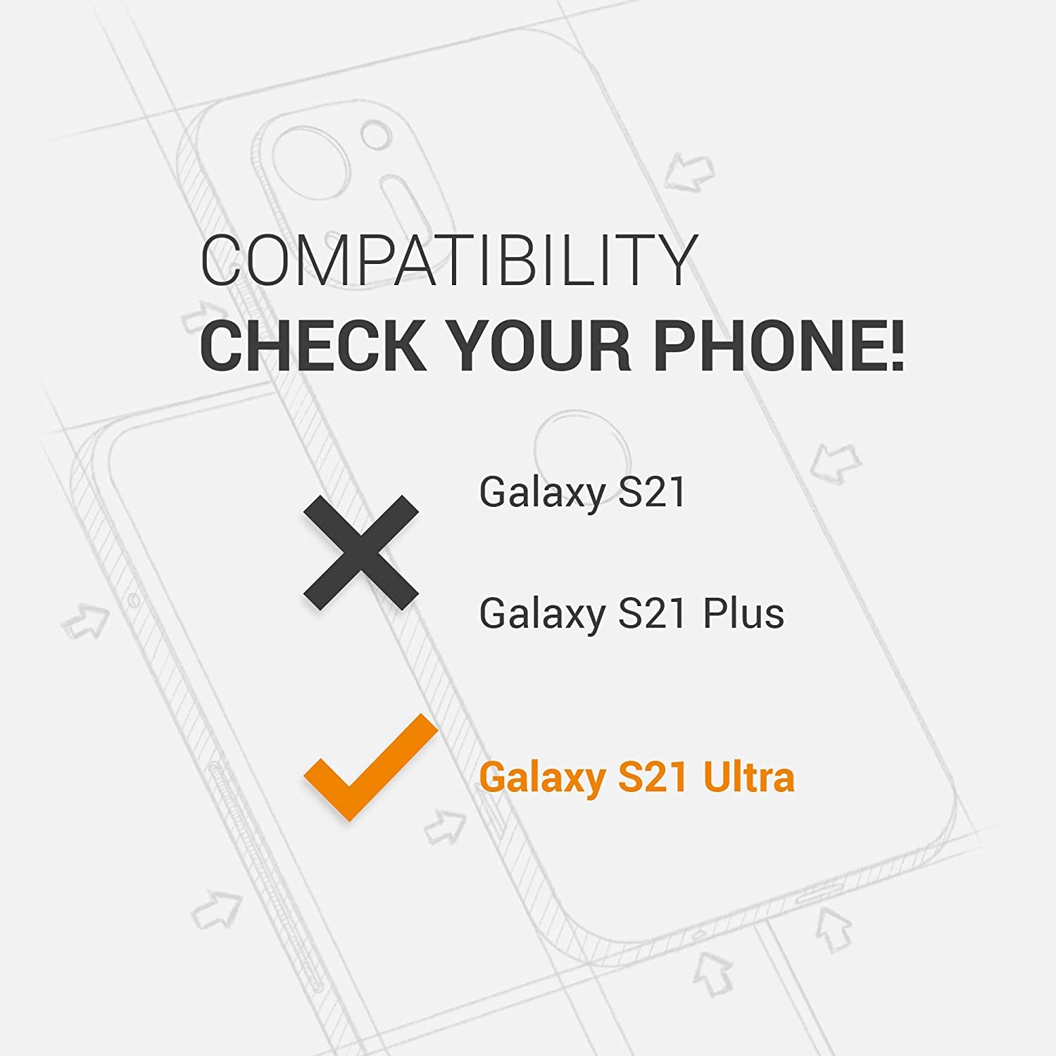Η θήκη είναι συμβατή μόνο με το Samsung Galaxy S21 Ultra 5G και όχι με το Samsung Galaxy S21 5G ή S21 Plus 5G.