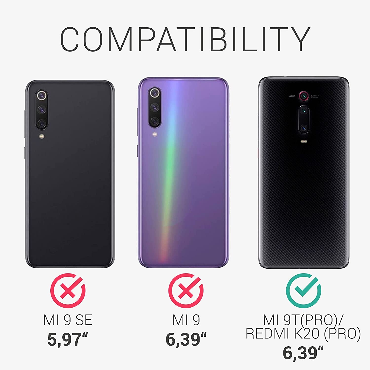 Η θήκη είναι συμβατή μόνο με το Xiaomi Mi 9T / Mi 9T Pro και όχι με τo Xiaomi Mi 9, 9 SE ή 9 Lite.