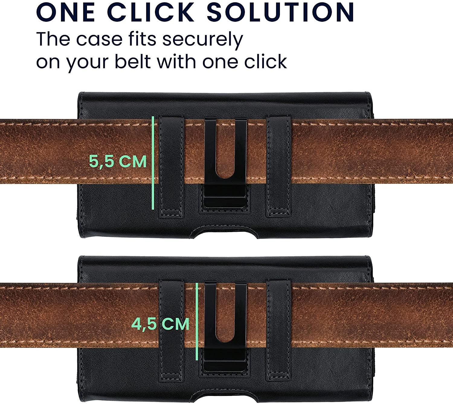Διαθέτει δύο υποδοχές πιστωτικών καρτών, μία υποδοχή για τα κέρματά σας και την κύρια υποδοχή για το κινητό σας. Με εσωτερικές διαστάσεις 14,4 x 7 cm, και κατάλληλη για ζώνες με πλάτος 4,5cm - 5,5 cm.