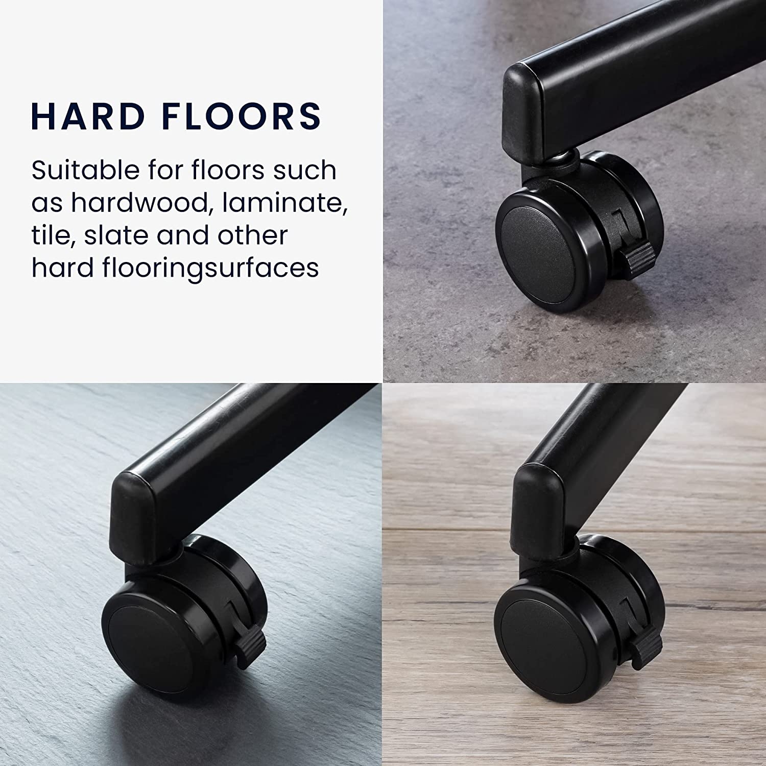 Επιπλέον, τα ροδάκια προστατεύουν τα δάπεδα με σκληρή επιφάνεια από σημάδια και γρατσουνιές και έτσι είναι κατάλληλα για δάπεδα από ξύλο, laminate και πλακάκια. Επίσης, διαθέτουν περιστροφή 360 μοιρών, ενώ το υλικό εξασφαλίζει την ομαλή κύλιση τους.