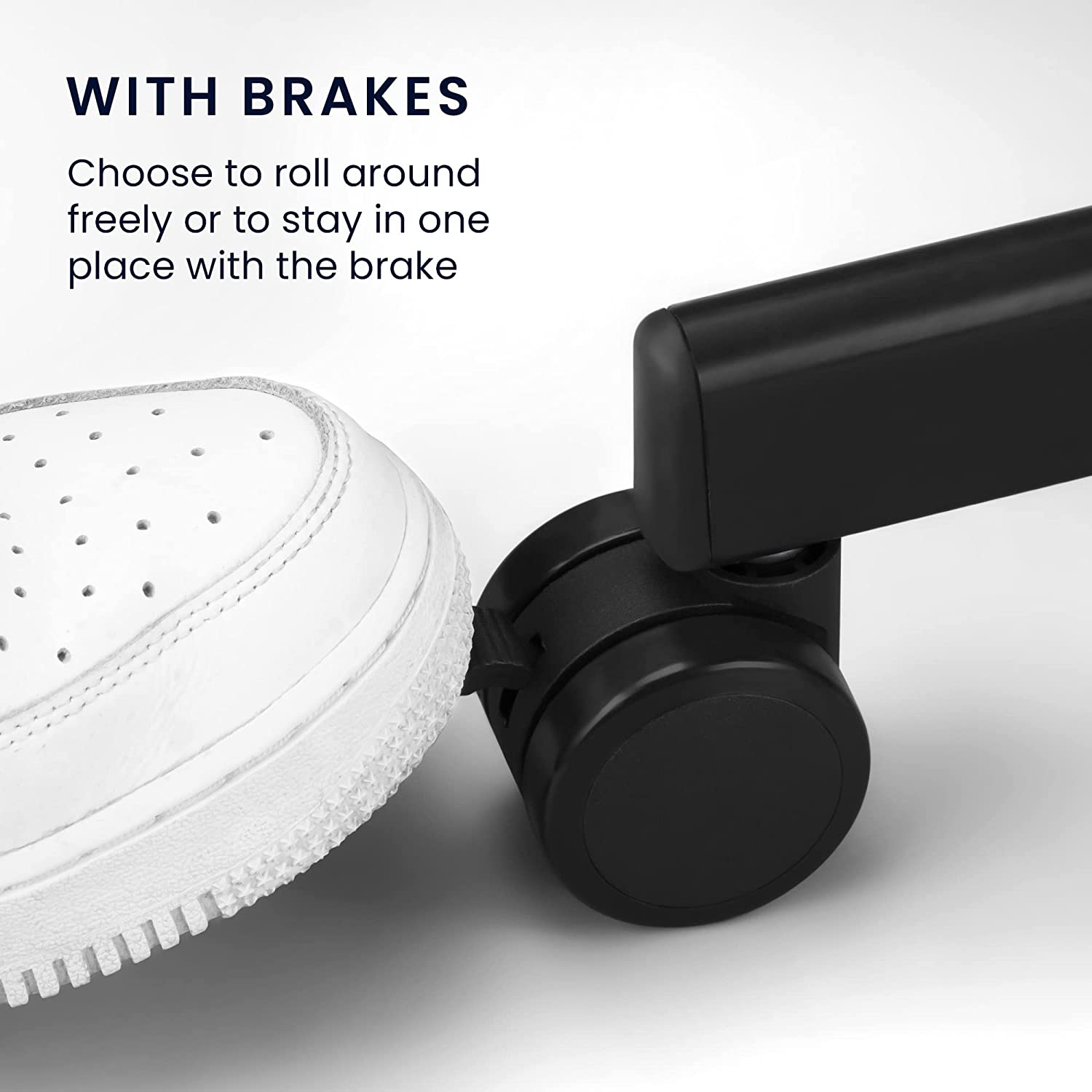 Τα ροδάκια διαθέτουν επίσης φρένα, ώστε να έχετε πάντα τον έλεγχο της καρέκλας σας, για να κλειδώσετε το φρένο, εσείς απλά πιέστε το μοχλό μέχρι τέρμα προς τα κάτω και για να απελευθερωθεί, απλώς τραβήξτε το ξανά προς τα πάνω!