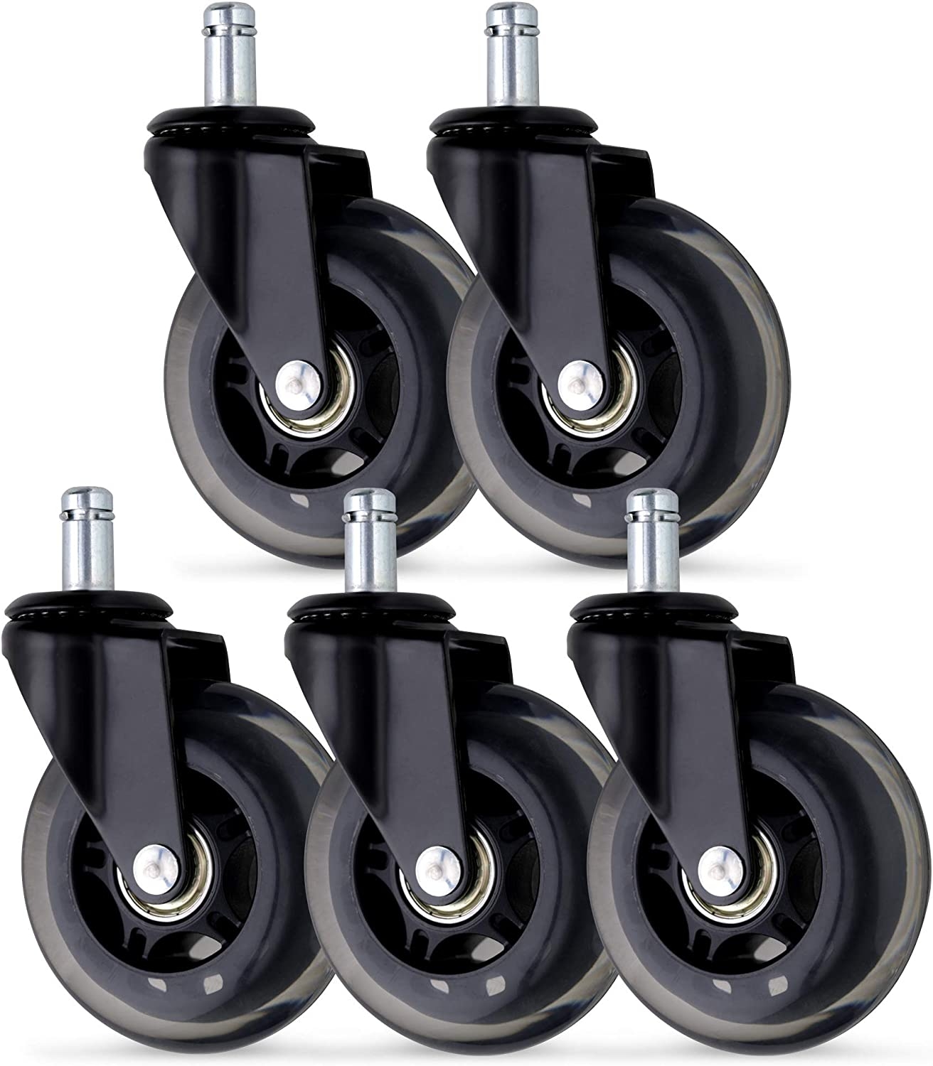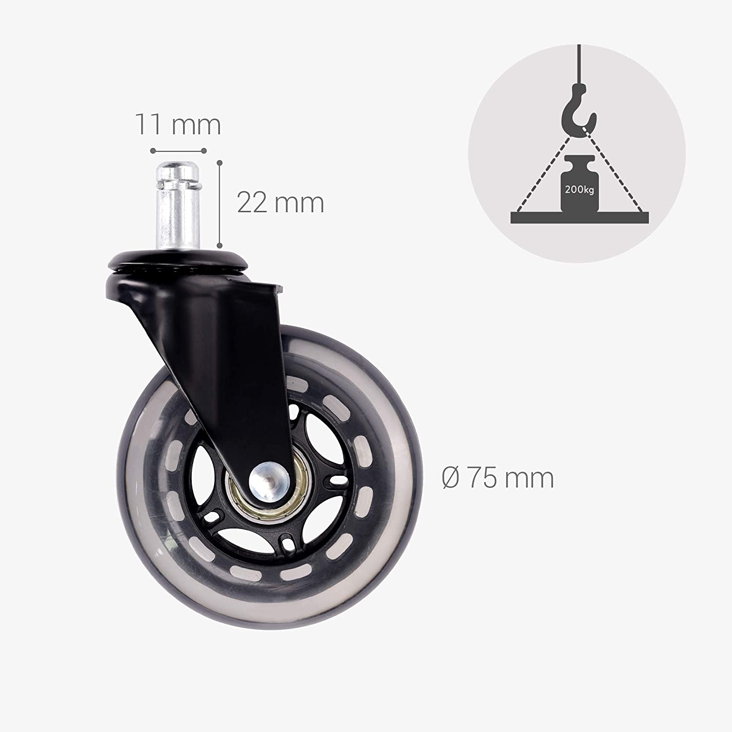 Ανανεώστε ή αντικαταστήστε τα ροδάκια της καρέκλας του γραφείου σας με το Premium σετ της KW! Είναι σχεδιασμένα για να ταιριάζουν σε υποδοχές μεγέθους 11mm και είναι κατάλληλα για καρέκλες γραφείου, τραπέζια, ράφια και άλλα ελαφριά έπιπλα.