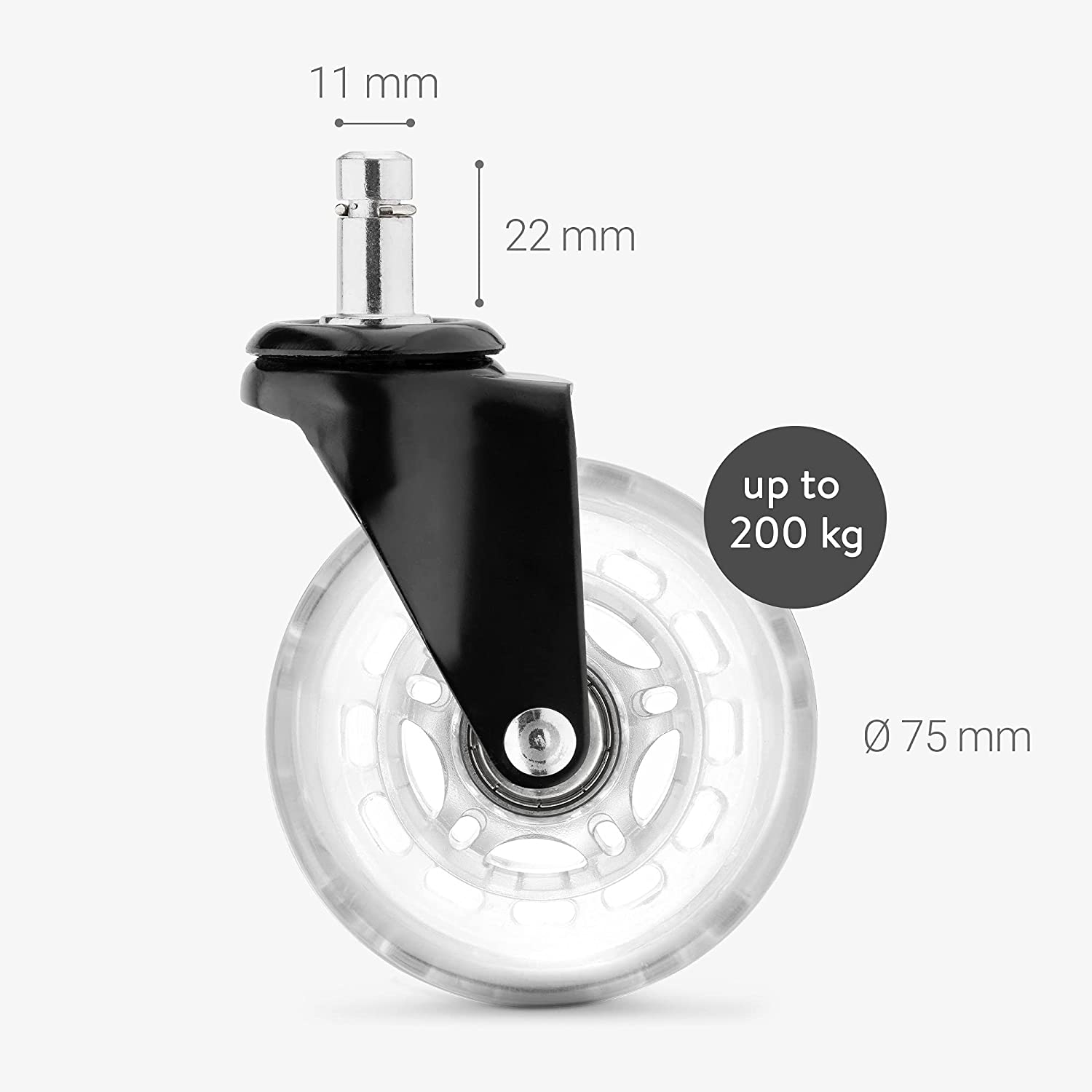 Ανανεώστε ή αντικαταστήστε τα ροδάκια της καρέκλας του γραφείου σας με το Premium σετ της KW! Είναι σχεδιασμένα για να ταιριάζουν σε υποδοχές μεγέθους 11mm και είναι κατάλληλα για καρέκλες γραφείου, τραπέζια, ράφια και άλλα ελαφριά έπιπλα.