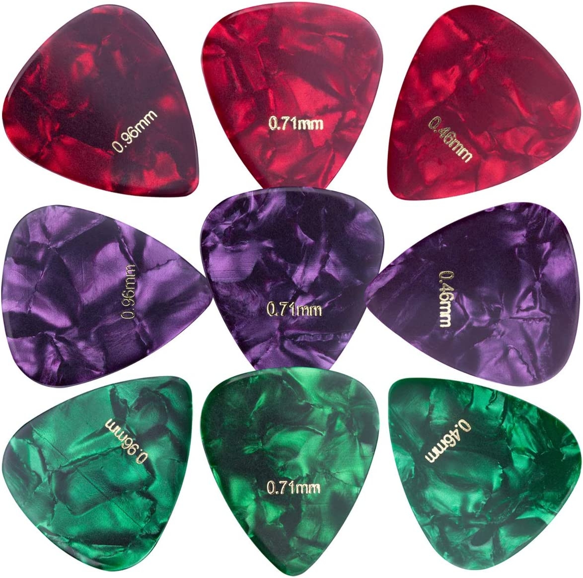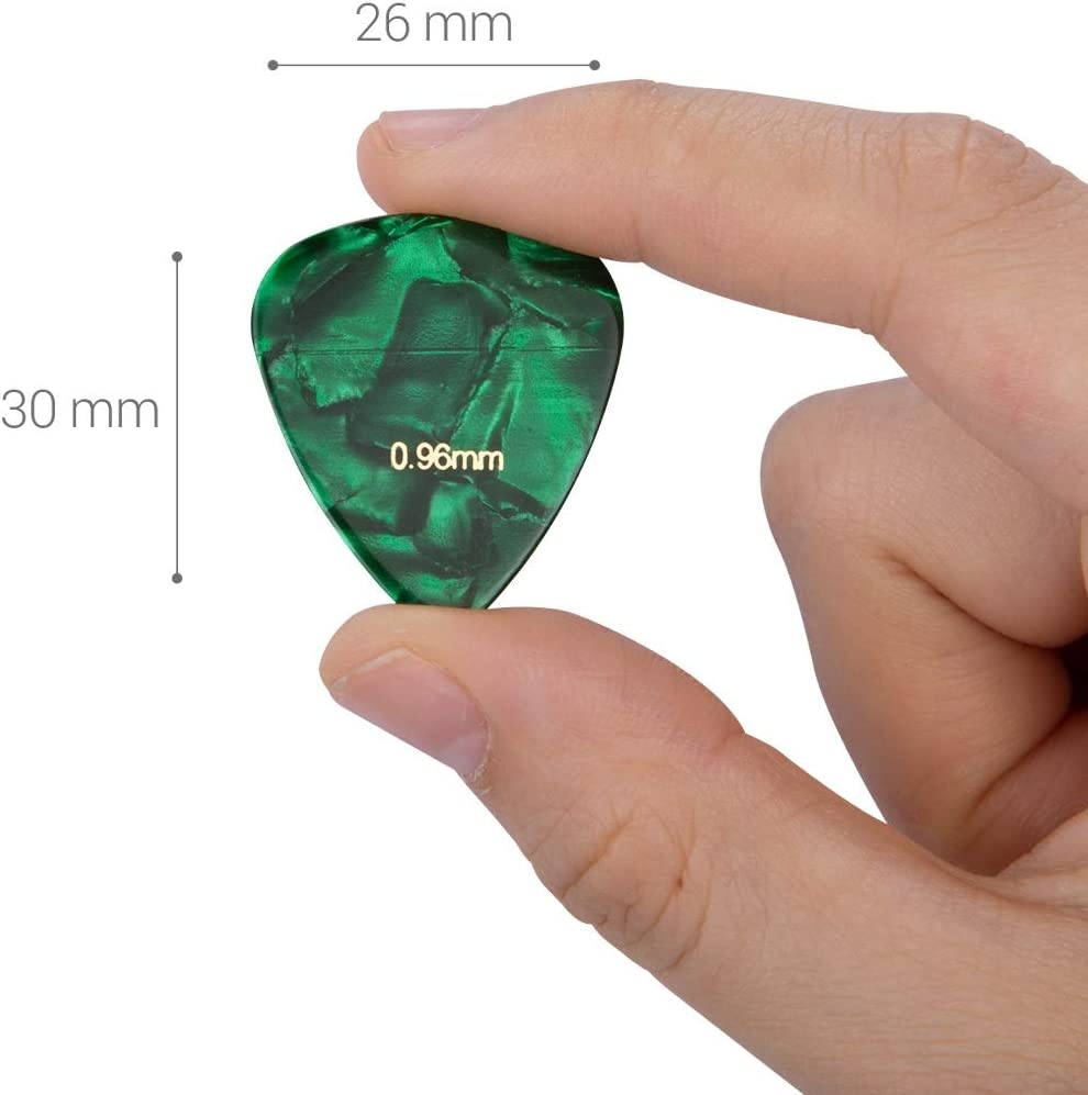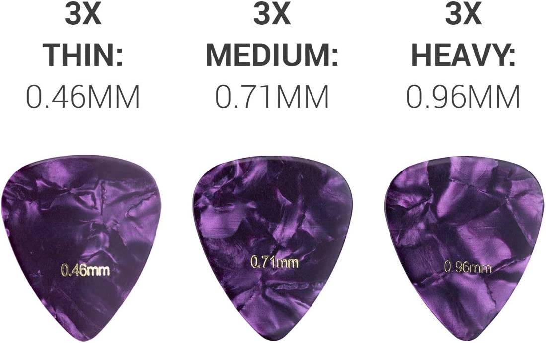 Το συνολικό μέγεθος και το φαρδύ σχήμα της πένας είναι το ιδανικό για την επιφάνεια της κιθάρας σας, ενώ σας επιτρέπει να την κρατάτε με ασφάλεια. Είναι εξαιρετικό για αρχάριους που μαθαίνουν να κρατούν την πένα, καθώς προσφέρει σταθερό κράτημα! Στο σετ των 9 τεμαχίων, θα λάβετε 3 x λεπτά, πάχους 0.46 mm, 3 x μεσαία, πάχους 0.71 mm και 3 x σκληρά, πάχους 0.96 mm.