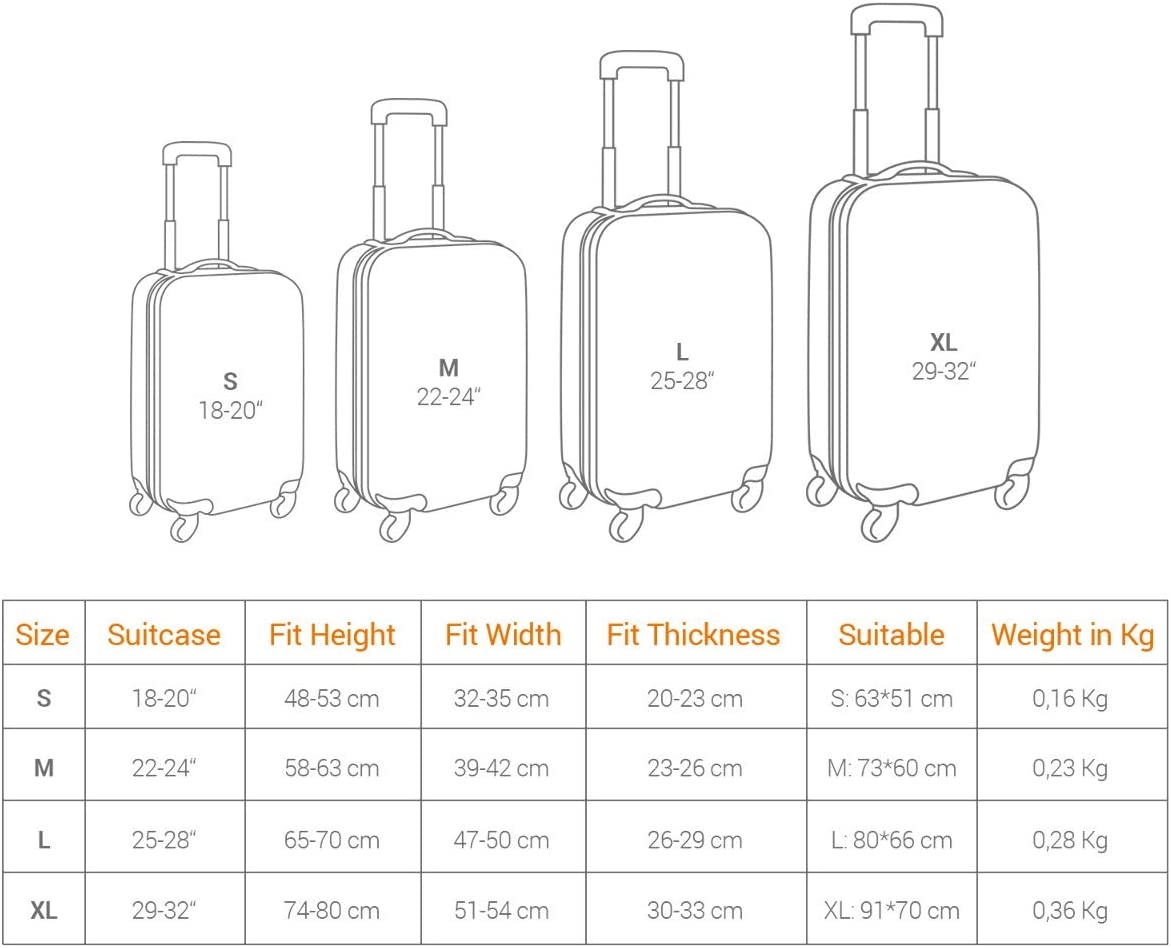 Το κάλυμμα αποσκευών είναι ανθεκτικό και προσφέρει υψηλή ελαστικότητα για να εφαρμόζει άνετα και εύκολα κατά μεταφορά. Το παχύ υλικό προστατεύει επίσης τις αποσκευές από γρατσουνιές, βαθουλώματα, είναι ανθεκτικό στο σκίσιμο και έχει αντιολισθητικές ιδιότητες.
