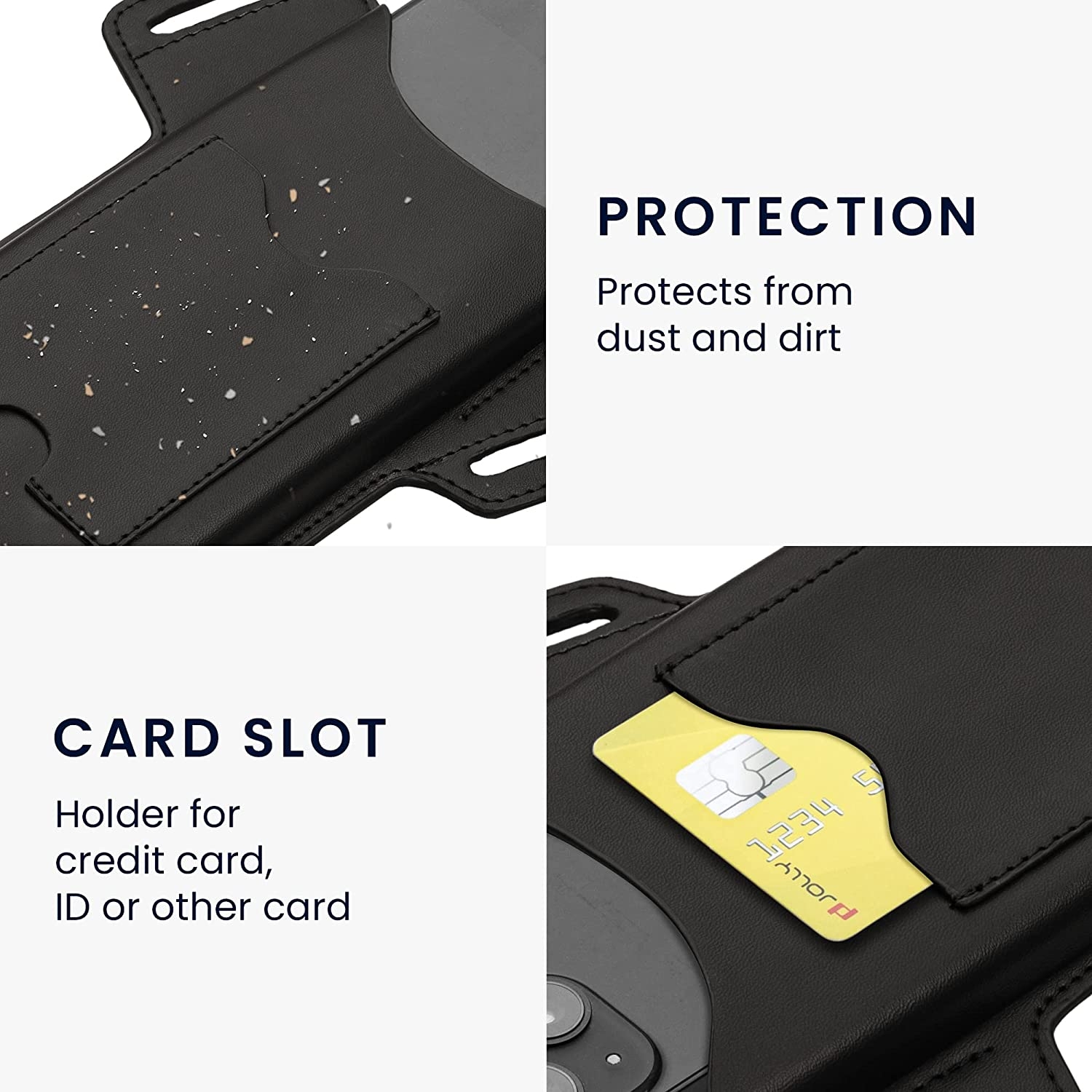 Επιπλέον, αυτή η πρακτική θήκη διαθέτει μία εξωτερική υποδοχή για χρεωστικές ή πιστωτικές κάρτες, επαγγελματικές κάρτες ή άλλες κάρτες σε μορφή πιστωτικής κάρτας. Επίσης, είναι κατασκευασμένη από λεπτό και ανθεκτικό συνθετικό δέρμα, ώστε να προσθέτει στυλ αλλά και προστασία στο κινητό σας.