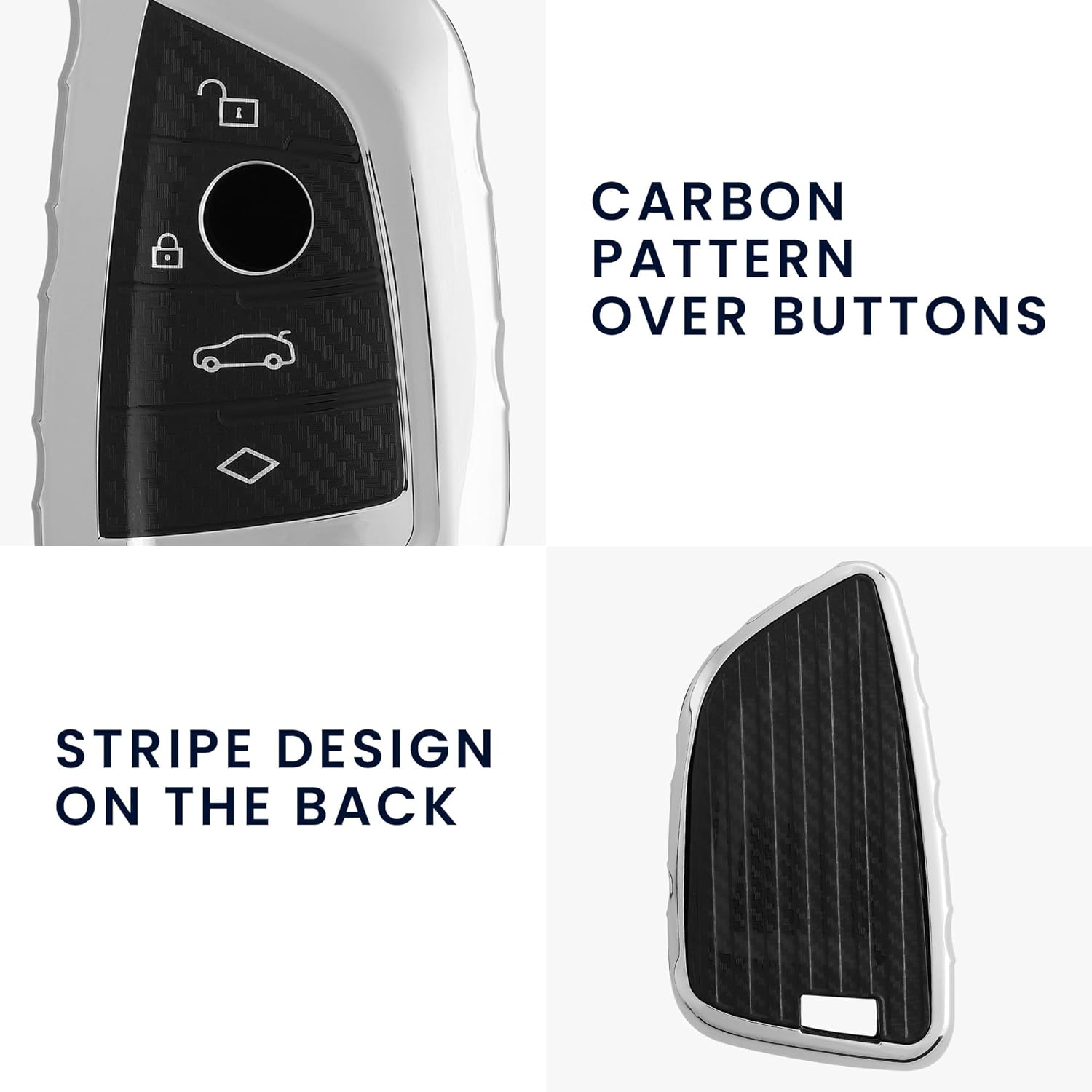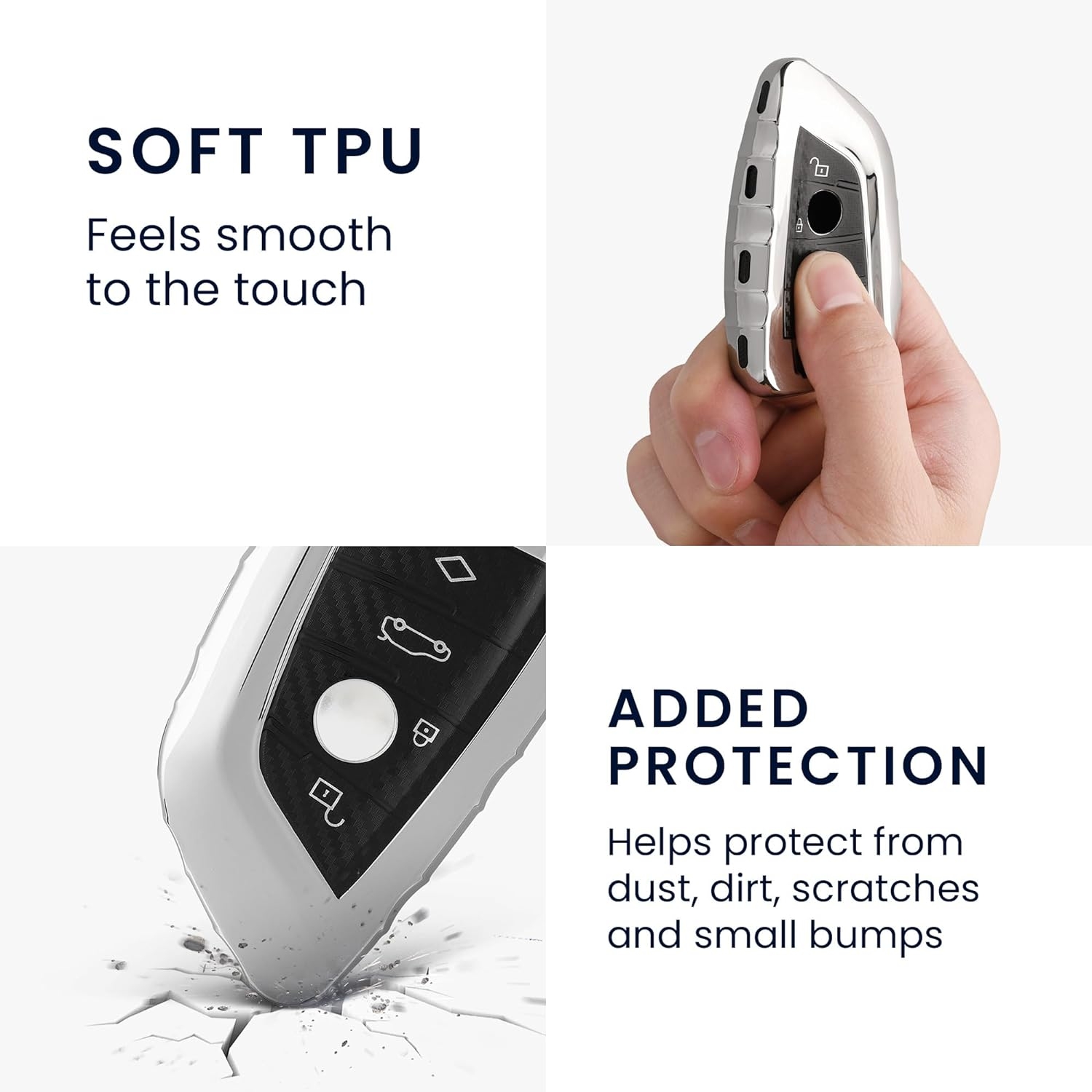 Το υλικό TPU υψηλής ποιότητας προσφέρει άνετη εφαρμογή και απαλή αίσθηση στην αφή, ενώ το σχέδιο από άνθρακα γύρω από τα κουμπιά και οι ρίγες στο πίσω μέρος προσθέτουν στυλ και επιπλέον προστασία. Ειδικά σχεδιασμένη για να ταιριάζει απόλυτα στο μοντέλο του κλειδιού του αυτοκινήτου σας, αυτή η θήκη τοποθετείται εύκολα χωρίς εργαλεία, προσφέροντας προστασία χωρίς παρεμβολές.