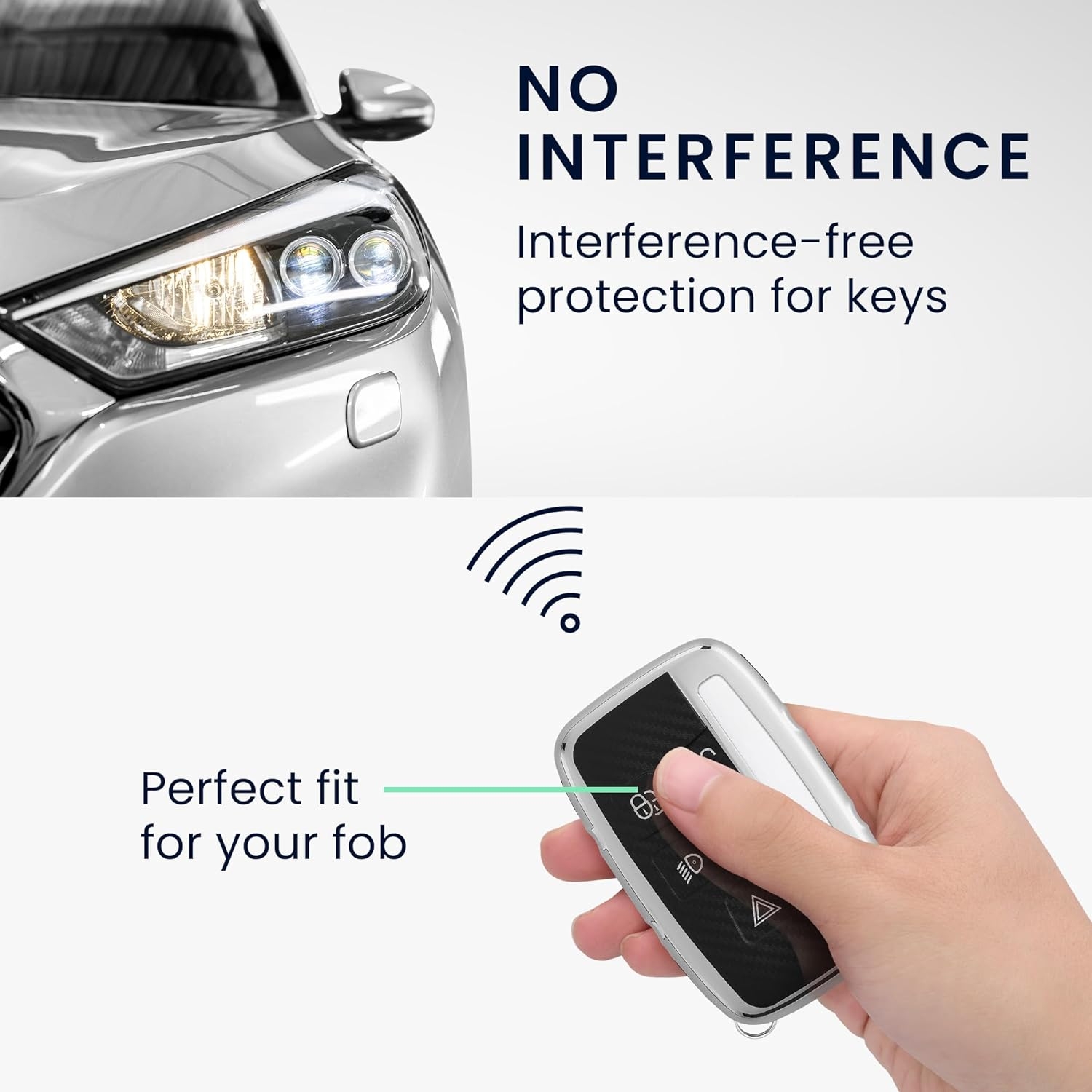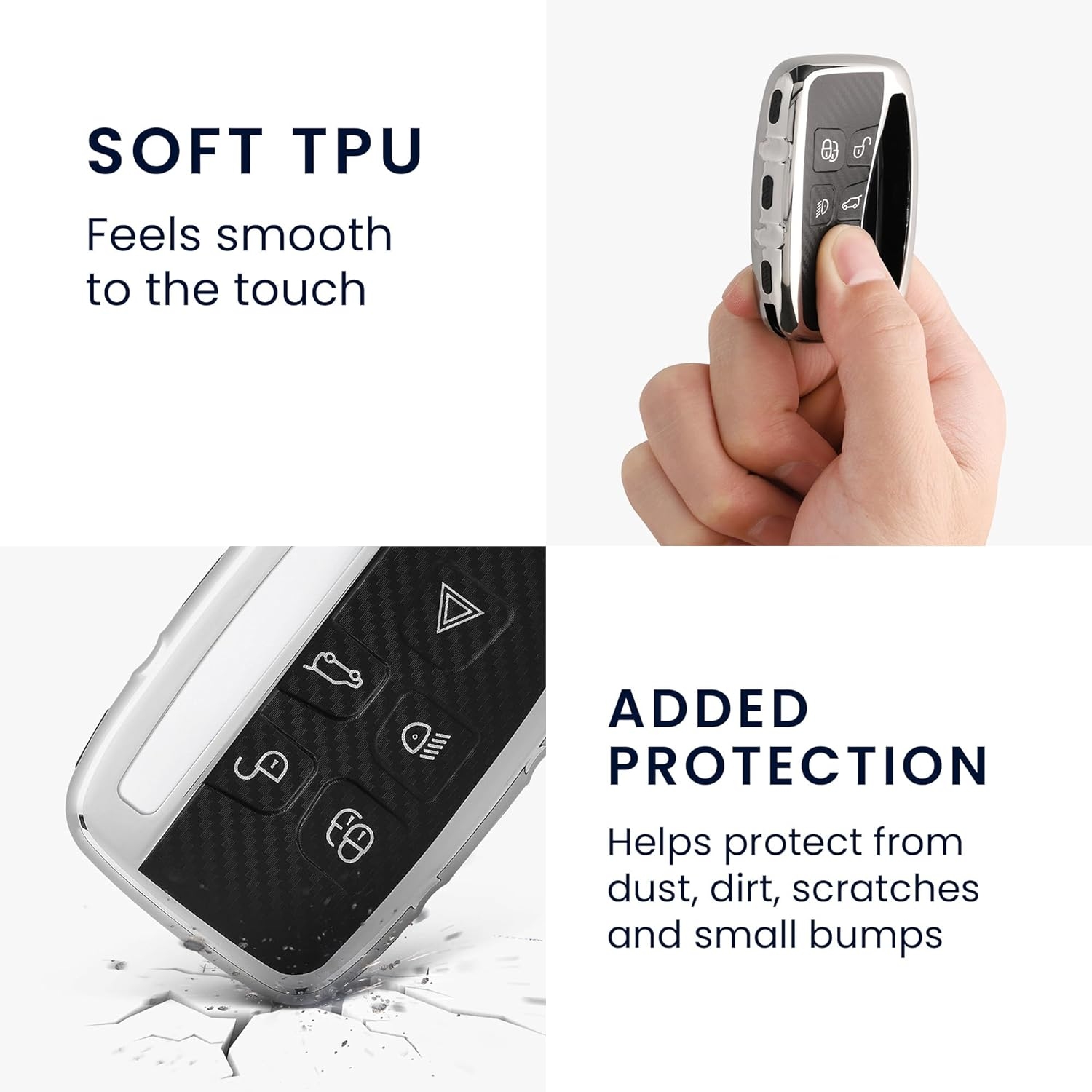 Το υλικό TPU υψηλής ποιότητας προσφέρει άνετη εφαρμογή και απαλή αίσθηση στην αφή, ενώ το σχέδιο από άνθρακα γύρω από τα κουμπιά και οι ρίγες στο πίσω μέρος προσθέτουν στυλ και επιπλέον προστασία. Ειδικά σχεδιασμένη για να ταιριάζει απόλυτα στο μοντέλο του κλειδιού του αυτοκινήτου σας, αυτή η θήκη τοποθετείται εύκολα χωρίς εργαλεία, προσφέροντας προστασία χωρίς παρεμβολές.