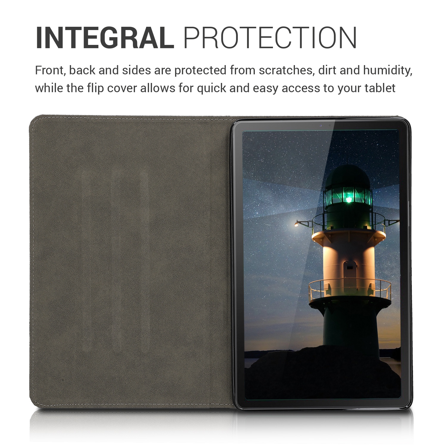 Κατασκευασμένη από συνθετικό δέρμα στο μπροστινό μέρος, μαλακή εσωτερική επένδυση για να αγκαλιάζει απαλά την οθόνη του Tablet χωρίς να της προκαλεί φθορές και σκληρό πλαστικό στο πίσω μέρος της.