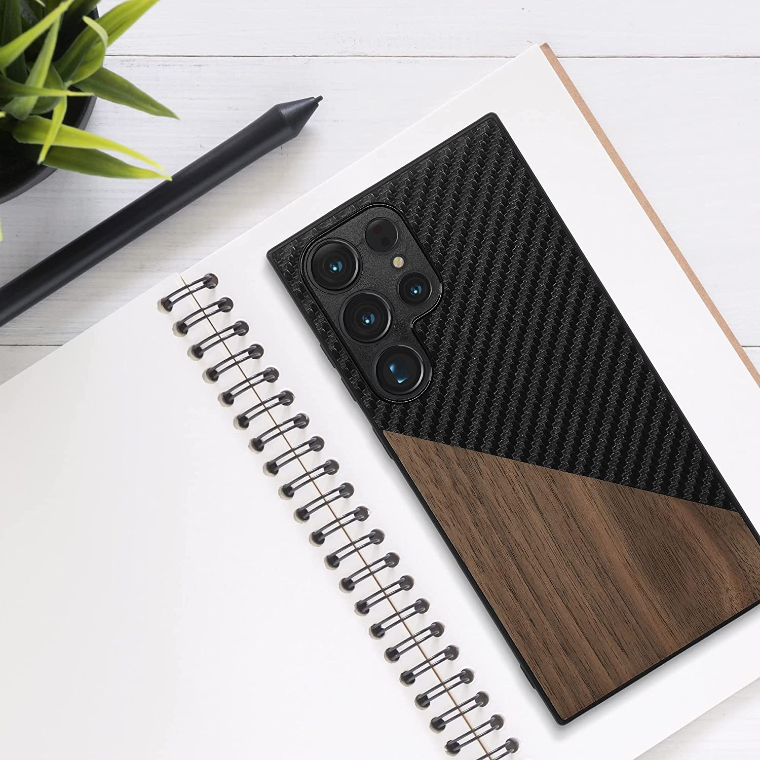 Αυτή η θήκη έχει μία υπέροχη σχεδίαση με πλάτη από ξύλο καρυδιάς και ανθρακονήματα και θα σας εντυπωσιάσει με την κομψή και μοντέρνα εμφάνισή της. Ταυτόχρονα, διαθέτει περιμετρικά της οθόνης ένα εύκαμπτο TPU Bumper, ώστε να προστατεύει την συσκευή σας από κραδασμούς, γρατζουνιές, σκόνη, καθημερινή χρήση.