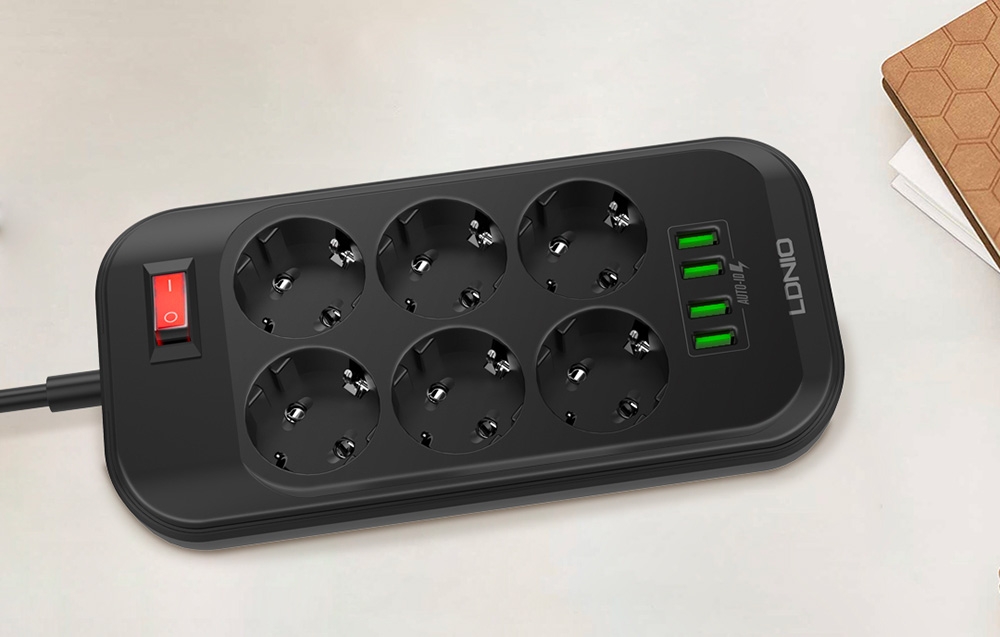 Το πολύπριζο SE6403 της Ldnio διαθέτει 6 πρίζες AC και 4 θύρες USB, με κατασκευή πυρίμαχου PC και με προηγμένα χαρακτηριστικά ασφαλείας που αυξάνουν την προστασία των συσκευών σας. Επίσης, προσαρμόζει αυτόματα την ένταση ρεύματος στη συνδεδεμένη συσκευή, ενώ οι LED ενδείξεις θα σας ενημερώνουν για την κατάσταση λειτουργίας.