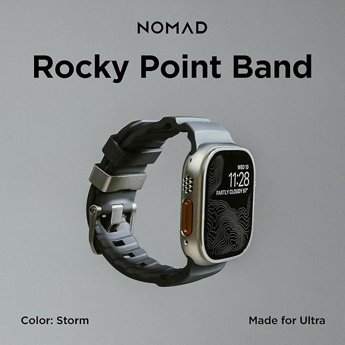 Το Rocky Point Band της Nomad είναι σχεδιασμένο για να δώσει στο αγαπημένο σας Apple Watch Ultra3/Ultra2/Ultra1/SE3/SE2/SE1/11/10/9/8/7/6/5/4 (49/46/45/44mm) μια μοντέρνα και μοναδική εμφάνιση, ενώ είναι ιδιαίτερα κομψό και κατάλληλο για την καθημερινή χρήση.