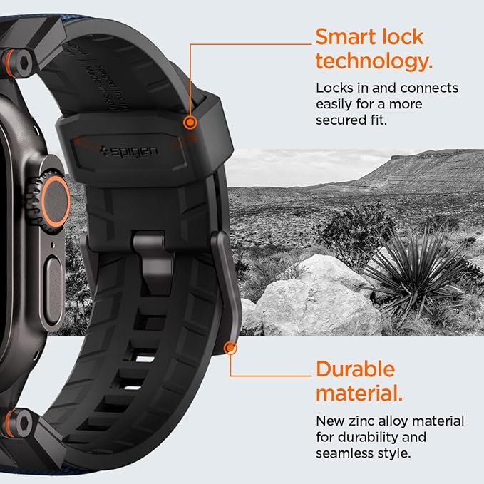 Το ανθεκτικό λουράκι DuraPro Armor της Spigen είναι σχεδιασμένο για να εφαρμόζει τέλεια στο Apple Watch Ultra3/Ultra2/Ultra1/SE3/SE2/SE1/11/10/9/8/7/6/5/4 (49/46/45/44mm) και να του προσθέτει στυλ και ομορφιά. Ταιριάζει σε οποιαδήποτε περίσταση και με οποιοδήποτε outfit!
