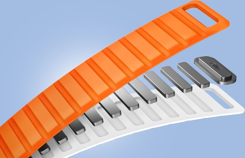 Κατασκευασμένο από ιδιαίτερα μαλακή σιλικόνη, επεξεργασμένη με υπεριώδη ακτινοβολία, με λείο φινίρισμα για να το αισθάνεται άνετα στον καρπό σας όλη μέρα. Είναι 100% ασφαλές για το δέρμα, εξασφαλίζοντας έτσι υψηλή άνεση στη χρήση. Η εύκαμπτη σιλικόνη προσαρμόζεται επίσης στο σχήμα του καρπού σας και σας επιτρέπει να συνδέσετε ή να αποσυνδέσετε εύκολα το λουράκι.