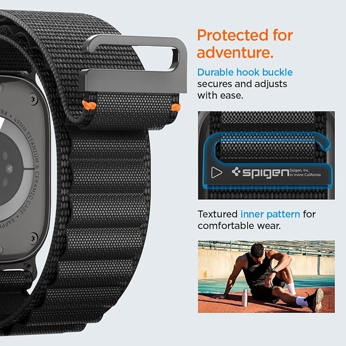 Το λουράκι WBF1 της Spigen είναι ειδικά σχεδιασμένο για τα αγαπημένα σας Apple Watch Ultra3/Ultra2/Ultra1/SE3/SE2/SE1/11/10/9/8/7/6/5/4 (49/46/45/44mm)! Πρόκειται για ένα ανθεκτικό, υφασμάτινο λουράκι υψηλής ποιότητας, με εργονομικό σχεδιασμό που προσφέρει εξαιρετική άνεση και κομψότητα όλο το 24ωρο!