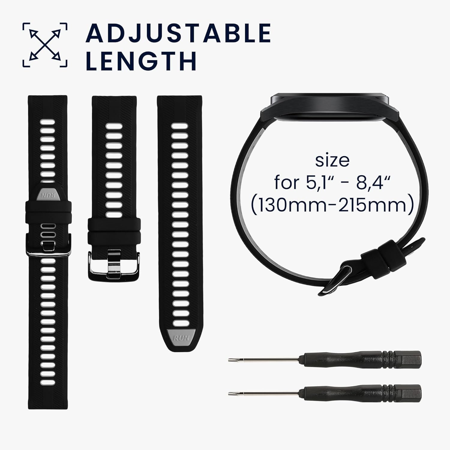 Η τοποθέτηση του και η αφαίρεση είναι εύκολη χάρη στα παρεχόμενα εργαλεία, ενώ είναι κατάλληλο για όλα τα μεγέθη χεριών, καθώς μπορεί να ρυθμιστεί από 130mm έως 215mm. Σίγουρα αποτελεί τη λύση ώστε να μην αποχωρίζεστε ποτέ το αγαπημένο σας ρολόι, ακόμη και στις πιο extreme δραστηριότητες!