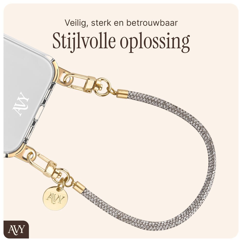 Αναβαθμίστε την εμφάνισή σας, προσθέστε λάμψη και γκλίτερ, και κρατήστε το τηλέφωνό σας πάντα ασφαλές και κοντά σας με το λουράκι χειρός Bracelet Wristband της AVY! Με αυτό το υπέροχο κόσμημα-αξεσουάρ, το τηλέφωνό σας είναι πάντα στα χέρια σας, προσφέροντάς σας επιπλέον ασφάλεια και λάμψη!