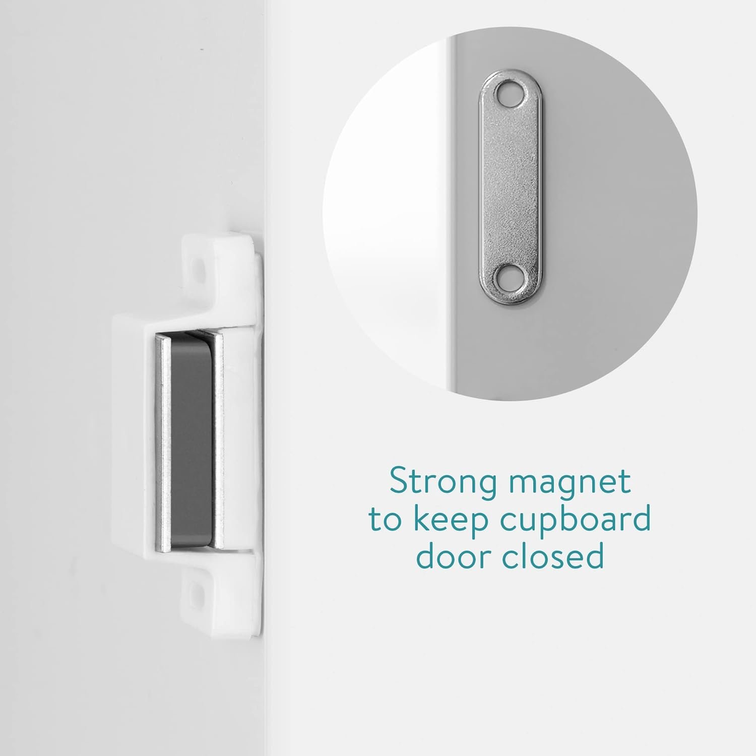 Κάθε μαγνητική κλειδαριά είναι κατασκευασμένη από ένα πλαστικό περίβλημα και μία μεταλλική πλάκα για μακροχρόνια χρήση. Ταιριάζει εύκολα με κάθε έπιπλο ή διακόσμηση ενώ η τοποθέτησή του είναι εύκολη, είτε με τα αυτοκόλλητα διπλής όψεως (περιλαμβάνονται) είτε με βίδες (δεν περιλαμβάνονται), εσείς απλώς τοποθετήστε τις μαγνητικές κλειδαριές με τις μεταλλικές τους πλάκες αντίστοιχα στο πάνω και κάτω μέρος της πόρτας.