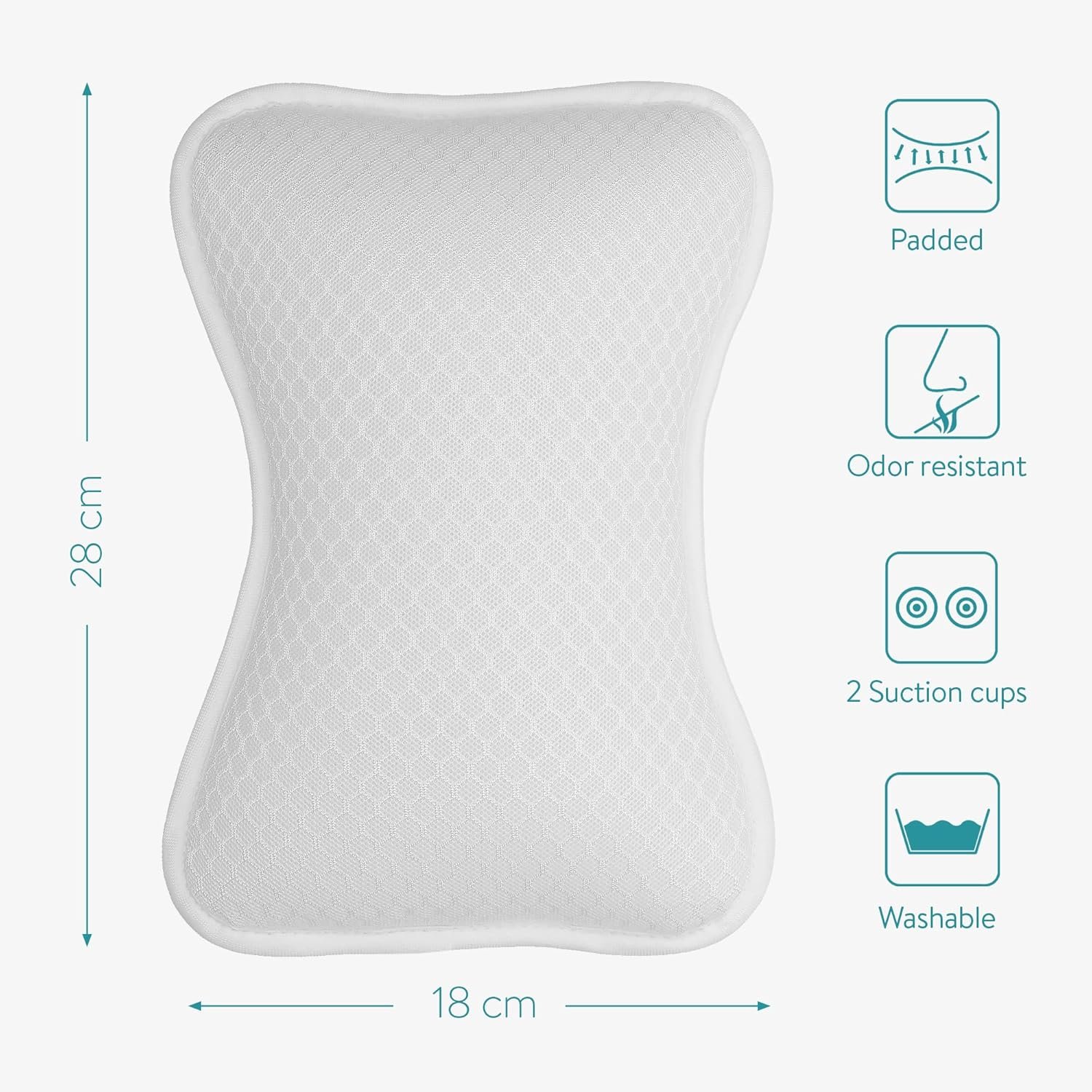 Χάρη στις βεντούζες, το μαξιλάρι παραμένει σταθερό στην άκρη της μπανιέρας ενώ λούζεστε. Διαθέτει εύκολο στη φροντίδα υλικό το οποίο στεγνώνει γρήγορα μετά τη χρήση, το εργονομικό του σχήμα παρέχει τη βέλτιστη άνεση και απομακρύνει την ένταση της ημέρας.