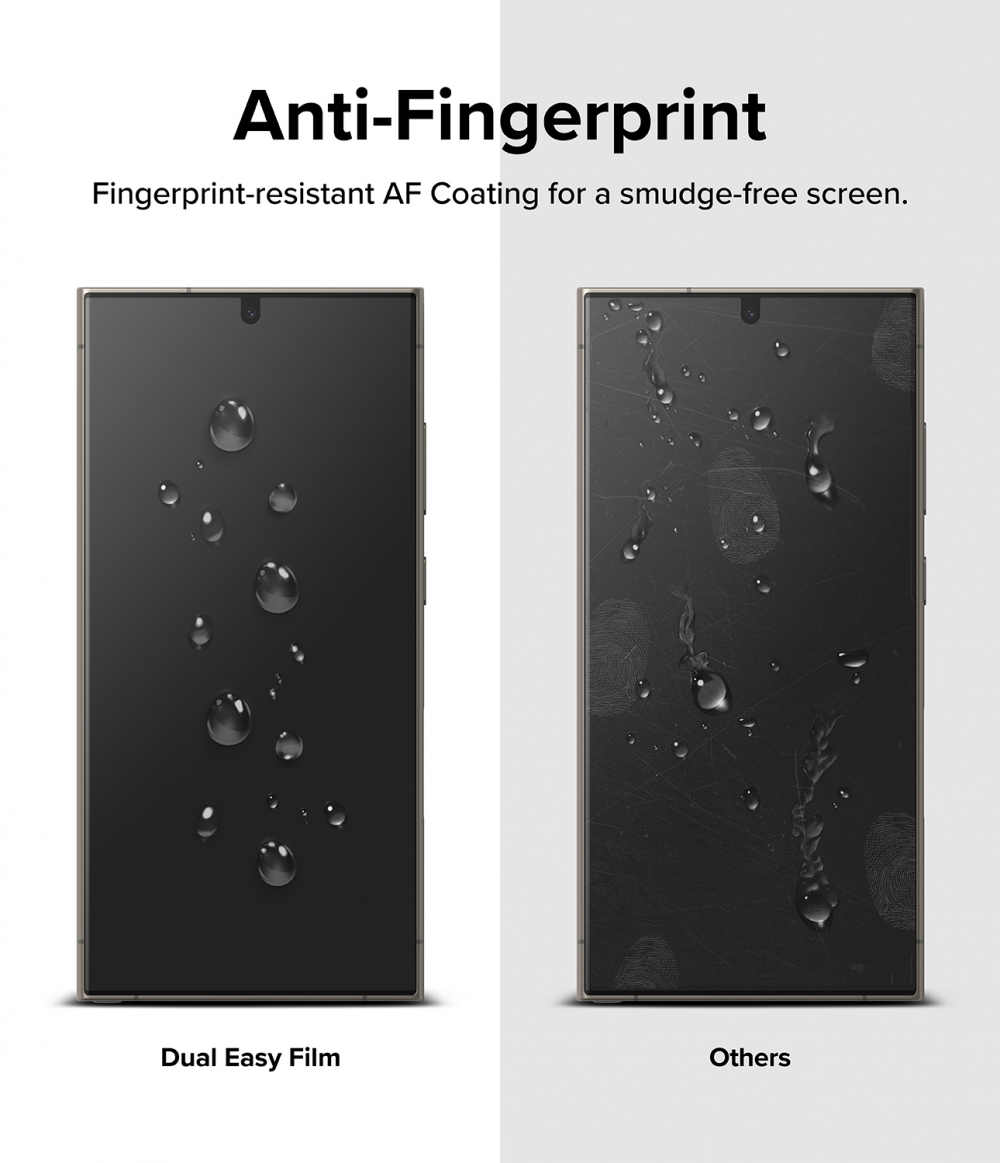 Η προστατευτική μεμβράνη Dual Easy Film της Ringke, είναι σχεδιασμένη για να εφαρμόζει τέλεια στο αγαπημένο σας Samsung Galaxy S24 Ultra και να την προστατεύει από γρατζουνιές, φθορές, αλλά και δακτυλικά αποτυπώματα, χάρη στην ανθεκτική της ελαιόφοβη επικάλυψη!