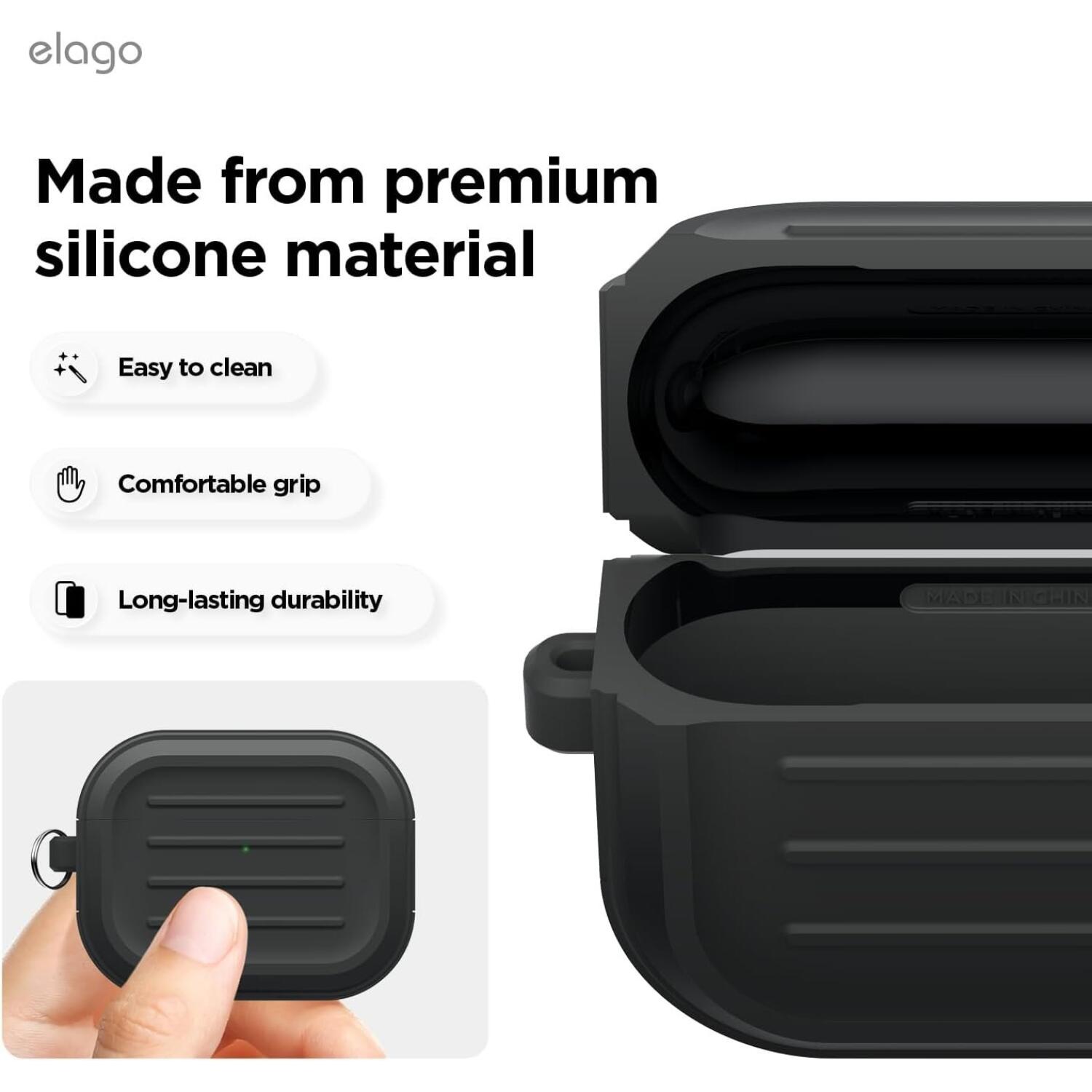 Η Elago σας φέρνει την νέα ανθεκτική θήκη Armor Hang Case, με λεπτό προφίλ, υπέροχη υφή και κράτημα, σχεδιάστηκε για να προστατέψει μοναδικά τα αγαπημένα AirPods Pro 3rd Gen. Μια υπέροχη κατασκευή από άριστης ποιότητας Premium σιλικόνη, ώστε να έχουν τα ακουστικά την απόλυτη σταθερότητα και να εφαρμόζουν όπως πρέπει στη θήκη.