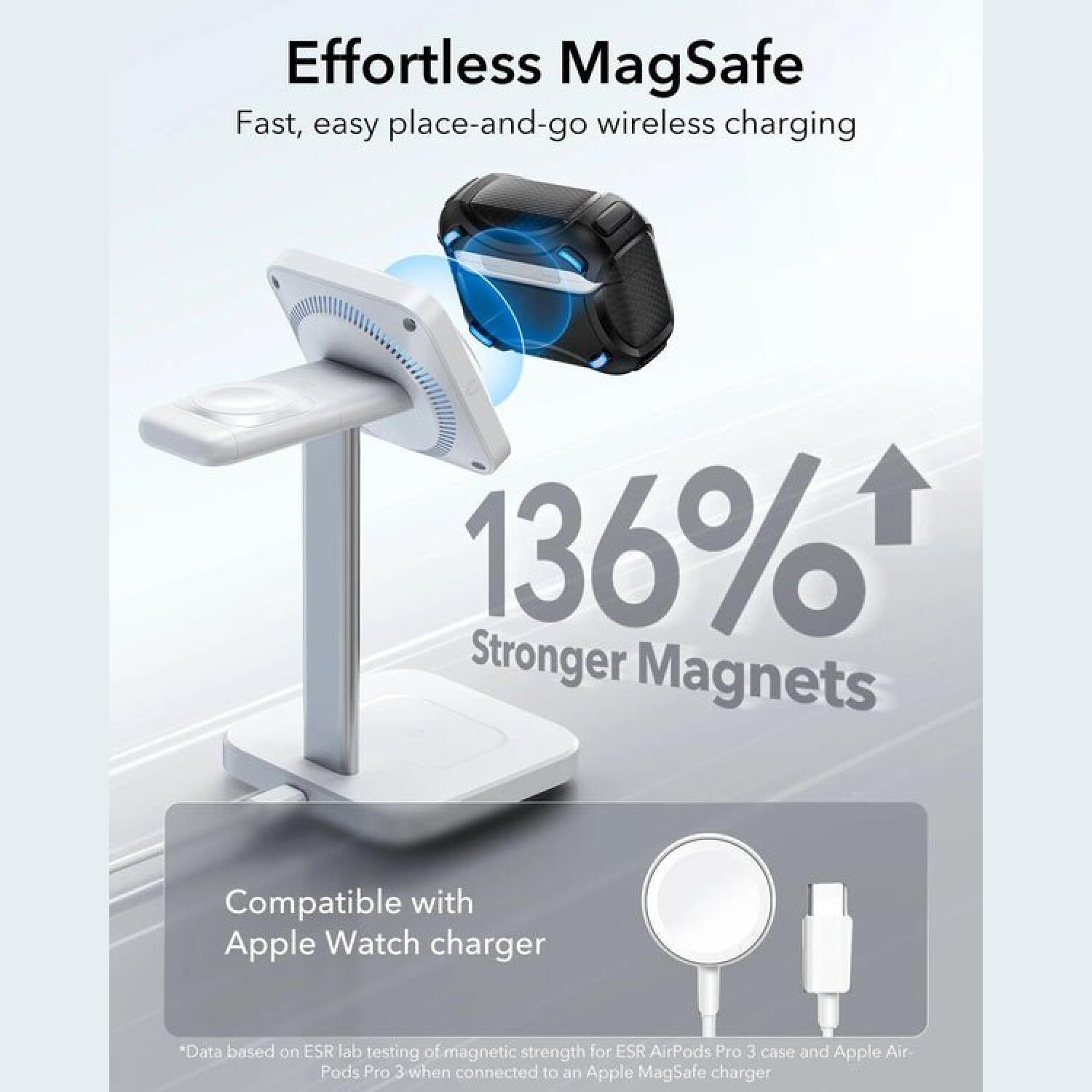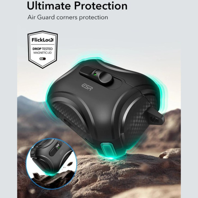 Η θήκη Cyber FlickLock Magnetic της ESR είναι μία μοναδική θήκη ειδικά σχεδιασμένη για τα αγαπημένα σας AirPods Pro 3rd Gen! Διαθέτει ισχυρό και ασφαλές μαγνητικό κλείσιμο και χάρη στους ενσωματωμένους μαγνήτες είναι συμβατή με την ασύρματη φόρτιση MagSafe. Αυτή η θήκη, θωρακίζει με ασφάλεια τα ακουστικά σας, χάρη στην υπέροχή της κατασκευή.