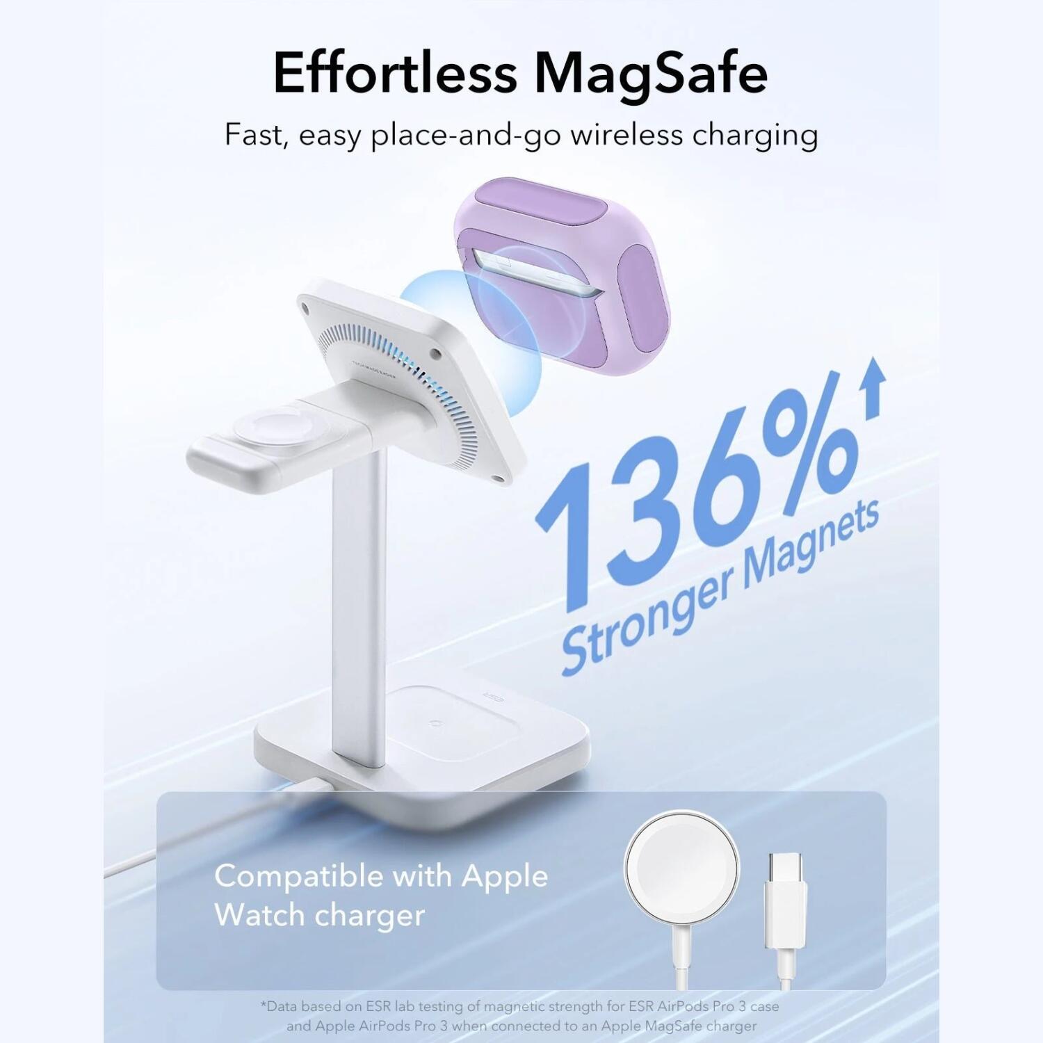 Απολαύστε γρήγορη και άνετη ασύρματη φόρτιση MagSafe στα AirPods Pro 3rd Gen, καθώς οι ισχυροί μαγνήτες στο πίσω μέρος της θήκης παρέχουν ασφαλή σύνδεση με φορτιστές MagSafe. Ταυτόχρονα, η θήκη είναι συμβατή με την ενσύρματη φόρτιση και διαθέτει εγκοπές για να έχετε ελεύθερη πρόσβαση σε όλες τις λειτουργίες.