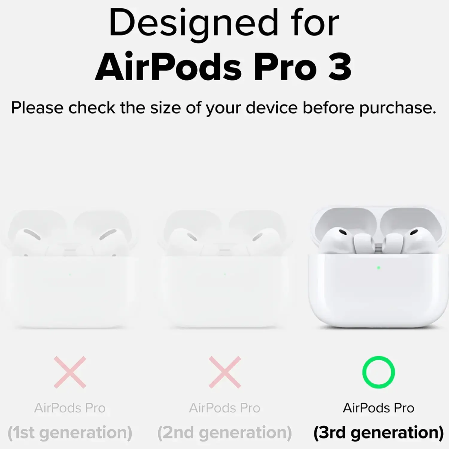 Η θήκη είναι συμβατή μόνο με τα AirPods Pro 3rd Gen και όχι με τα AirPods 4th Gen, Airpods Pro 2nd Gen, Airpods 3rd Gen, AirPods 2nd Gen / 1st Gen ή τα AirPods Pro 1st Gen.