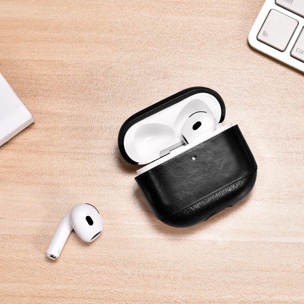 Η θήκη Vintage από την iCarer σε χρώμα Black, είναι κατασκευασμένη από δέρμα αγελάδας, προϊόν εξαιρετικής ποιότητας και έχει σχεδιαστεί για να προσφέρει μοναδική εμφάνιση και επιπλέον προστασία από γρατζουνιές και χτυπήματα στα αγαπημένα σας AirPods 4th Gen.