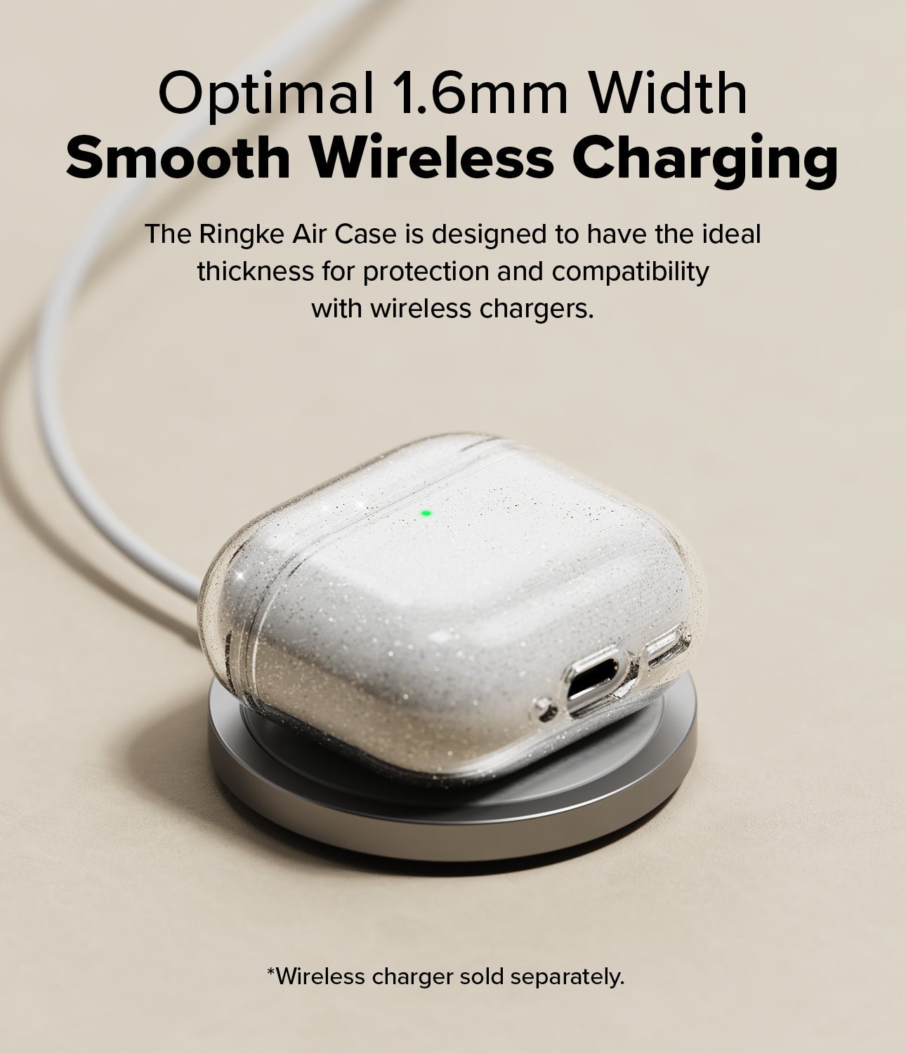 Είναι μια θήκη συμβατή με την ενσύρματη και ασύρματη φόρτιση των ακουστικών σας, χωρίς να χρειάζεται να την αφαιρέσετε. Έχει μάλιστα και τις κατάλληλες εγκοπές προκειμένου να μην εμποδίζεται η χρήση τους. Η θύρα φόρτισης δεν εμποδίζεται καθώς περιέχει ειδική σχισμή.