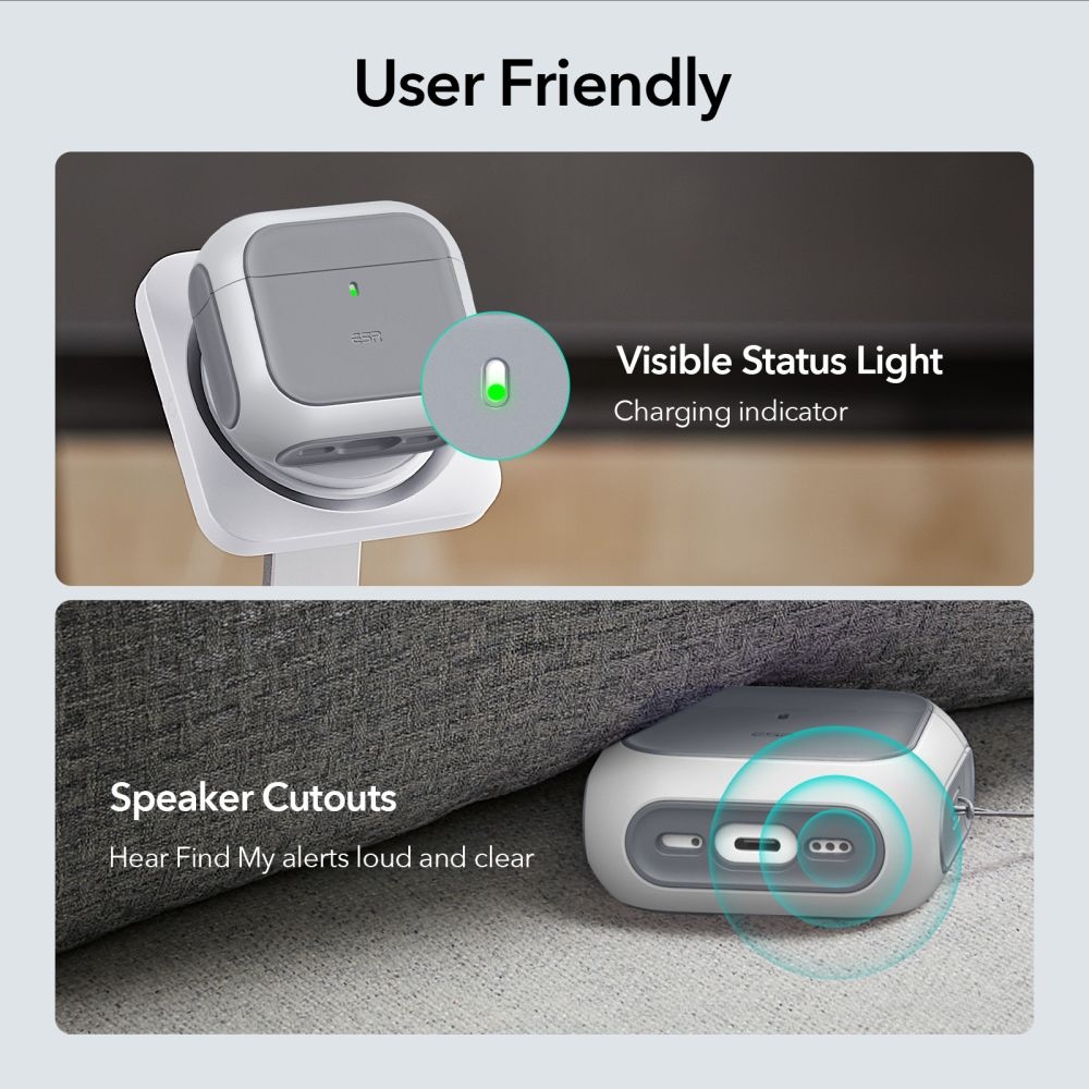 Αυτή η μοναδική θήκη θωρακίζει με ασφάλεια τα ακουστικά σας, χάρη στην υβριδική κατασκευή TPU και PC, τα οποία εξασφαλίζουν άνετη αίσθηση, ισχυρή προστασία από πτώσεις και στιβαρή αντοχή στις γρατσουνιές. Επίσης διαθέτει ειδικές εγκοπές για να μπορείτε να ακούτε τον ήχο της εφαρμογής FIND MY δυνατά και καθαρά, ώστε να γνωρίζετε πάντα πού βρίσκονται τα ακουστικά σας.
