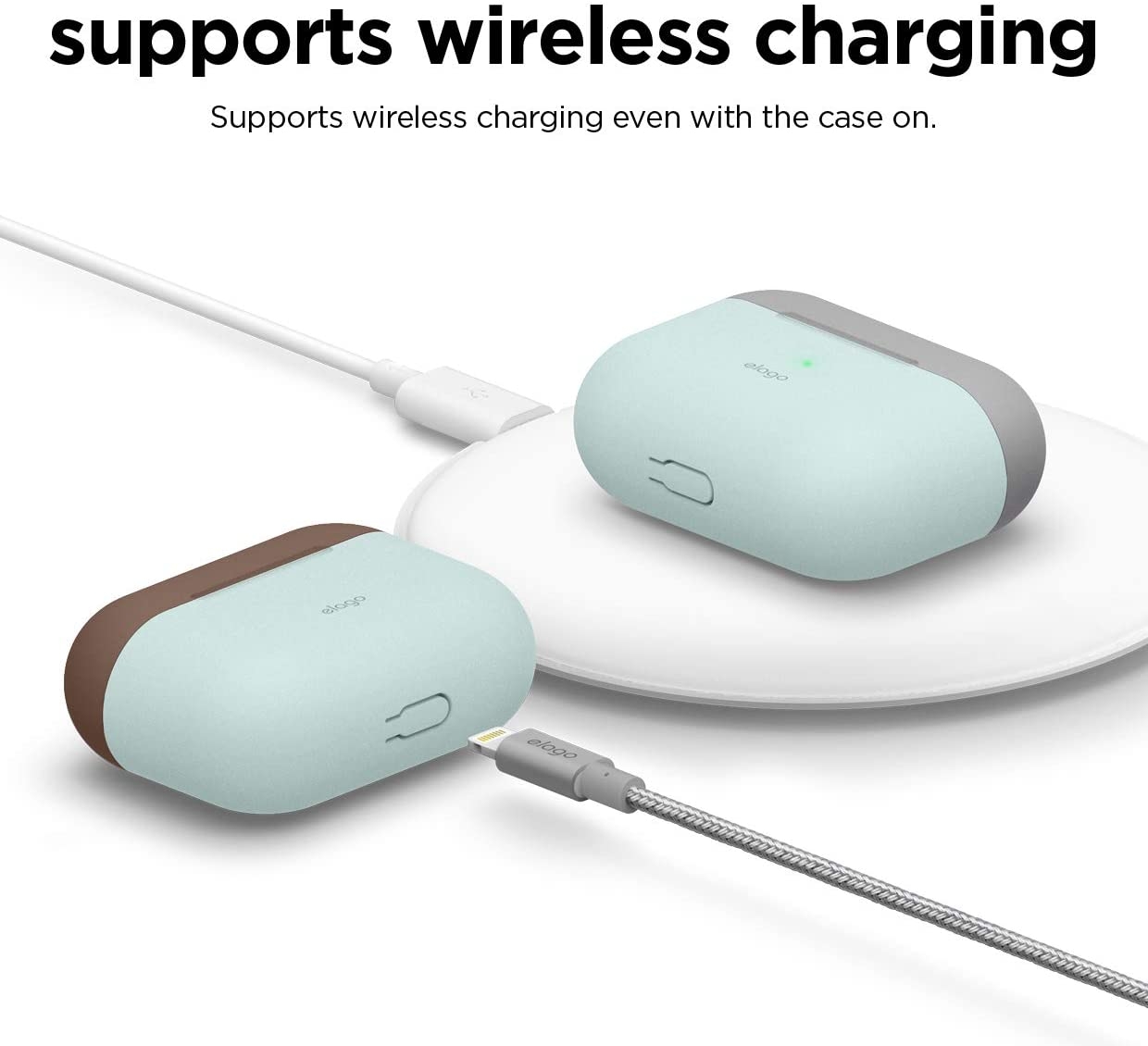 Είναι μια θήκη συμβατή τόσο με την ασύρματη φόρτιση, όσο και με την ενσύρματη φόρτιση των ακουστικών σας, χωρίς να χρειάζεται να την αφαιρέσετε. Έχει μάλιστα και τις κατάλληλες εγκοπές προκειμένου να μην εμποδίζεται η χρήση τους. Επίσης υπάρχει και ειδικό καπάκι το οποίο εφαρμόζει στη θύρα της φόρτισης, έτσι ώστε να μη πιάνει σκόνη και να μη λερώνεται από υγρά.