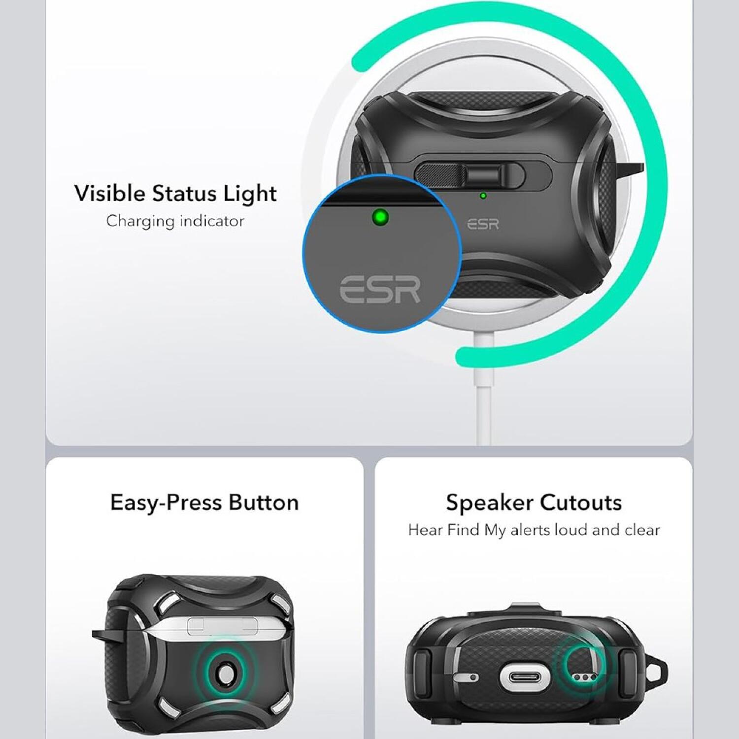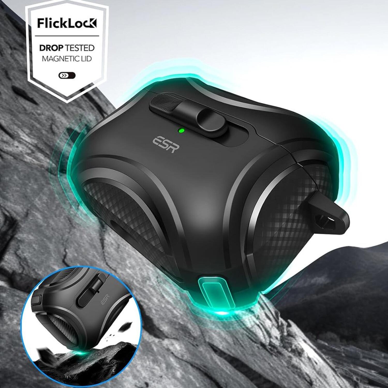 Η θήκη Cyber FlickLock HaloLock της ESR είναι μία μοναδική θήκη ειδικά σχεδιασμένη για τα αγαπημένα σας AirPods Pro 2nd Gen / 1st Gen! Διαθέτει ισχυρό και ασφαλές μαγνητικό κλείσιμο και χάρη στους ενσωματωμένους μαγνήτες είναι συμβατή με την ασύρματη φόρτιση MagSafe. Αυτή η θήκη, θωρακίζει με ασφάλεια τα ακουστικά σας, χάρη στην υπέροχή της κατασκευή.
