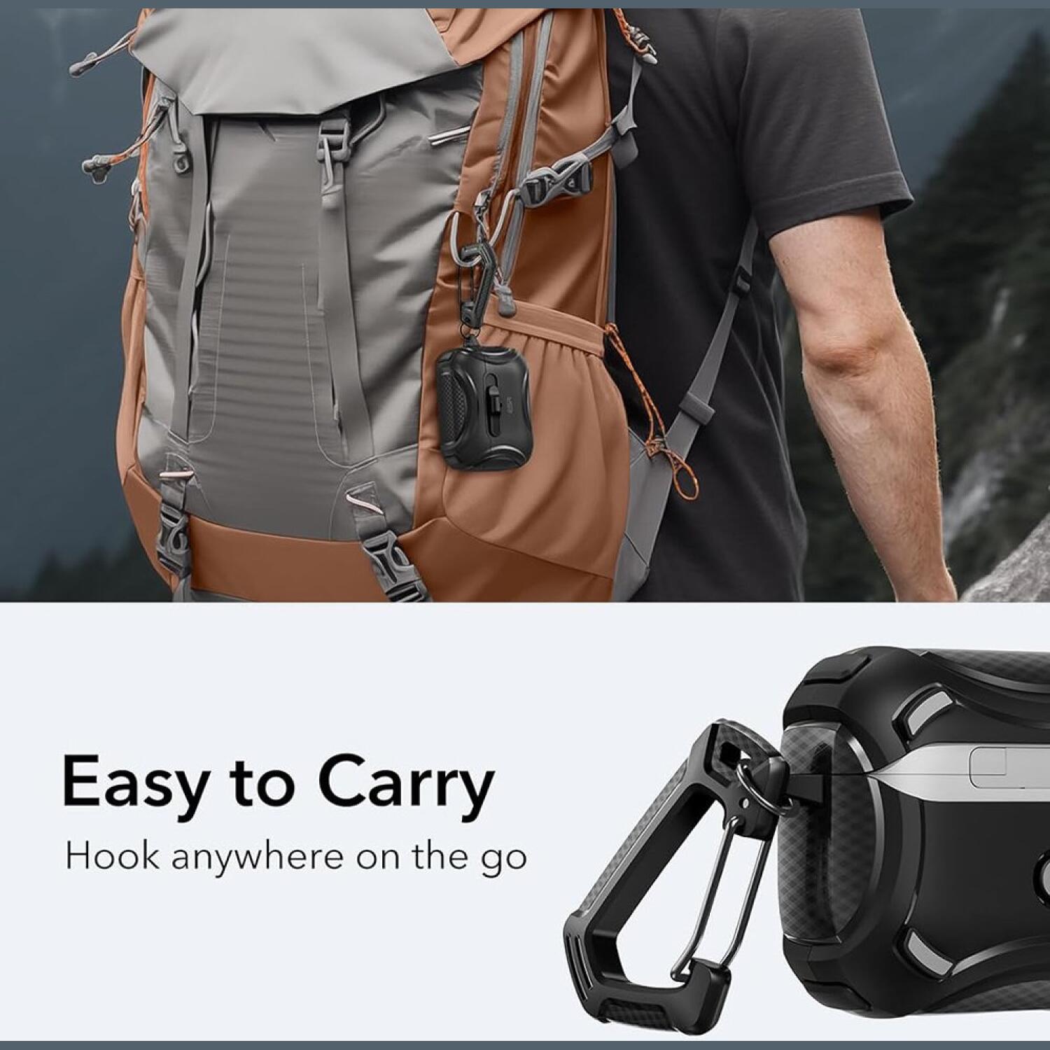 Με μια απλή κίνηση, σύροντας το ρυθμιστικό στο μπροστινό μέρος, το κούμπωμα απελευθερώνεται και το καπάκι ανοίγει, έτσι, έχετε άμεση πρόσβαση στα ακουστικά σας, ακόμη και με το ένα χέρι. Τέλος, περιλαμβάνεται και ένα πρακτικό καραμπίνερ - κλιπ, το οποίο μπορείτε να το τοποθετήσετε στην τσάντα ή τη ζώνη σας, ώστε τα AirPods Pro 2nd Gen / 1st Gen να παραμένουν ασφαλή όταν βρίσκεστε εν κινήσει.