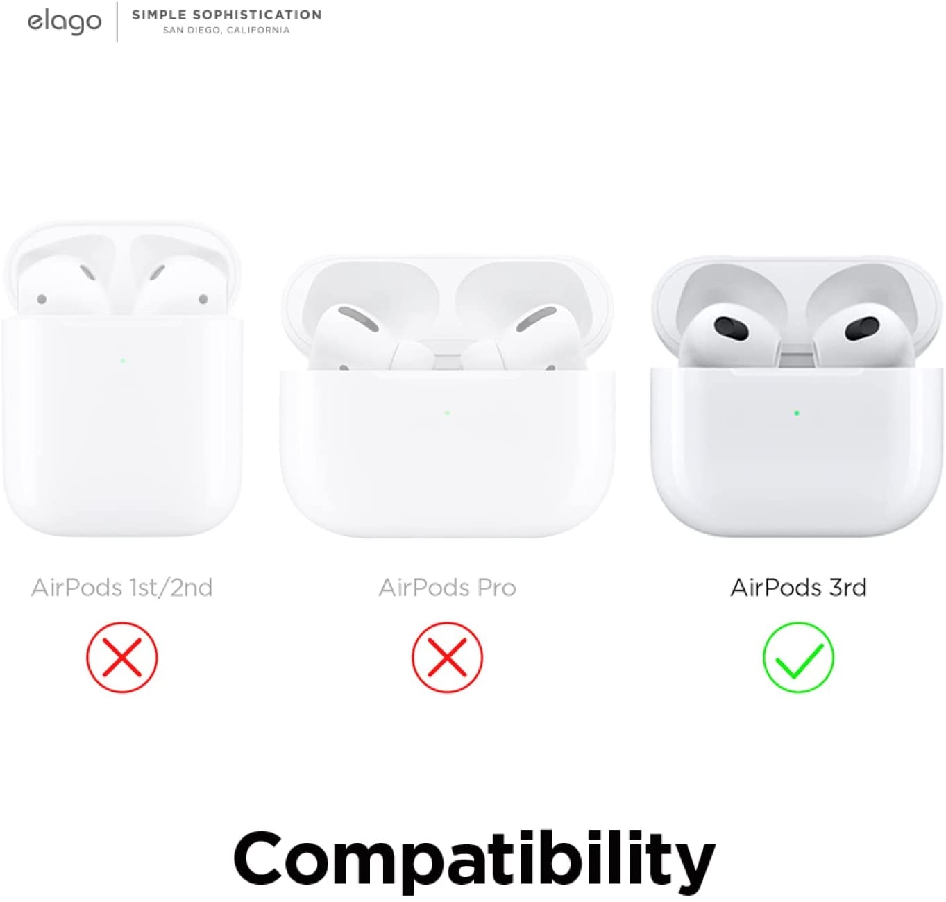Η θήκη είναι συμβατή μόνο με τα AirPods 3rd Gen και όχι με τα AirPods 2nd Gen / 1st Gen ή τα AirPods Pro.