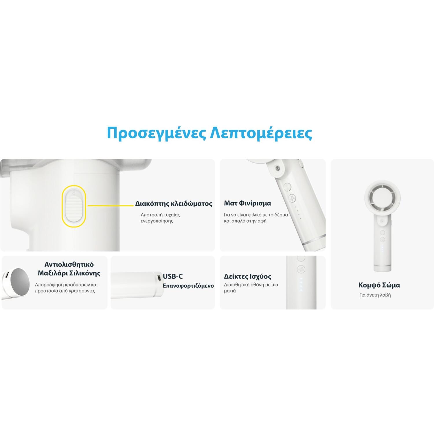 Η λειτουργία ομίχλης, ψύχει και ενυδατώνει, ενώ μπορείτε να απολαύσετε μέγιστη διάρκεια λειτουργίας έως και 9.5 ώρες, ταυτόχρονα, σας προσφέρει γρήγορη φόρτιση μέσω της θύρα Type-C, καθώς μπορεί να φορτιστεί πλήρως σε μόλις 1 ώρα και 30 λεπτά με γρήγορη φόρτιση. Επίσης, έχει έναν premium σχεδιασμό, δίνοντάς σας μία αίσθηση πολυτέλειας.